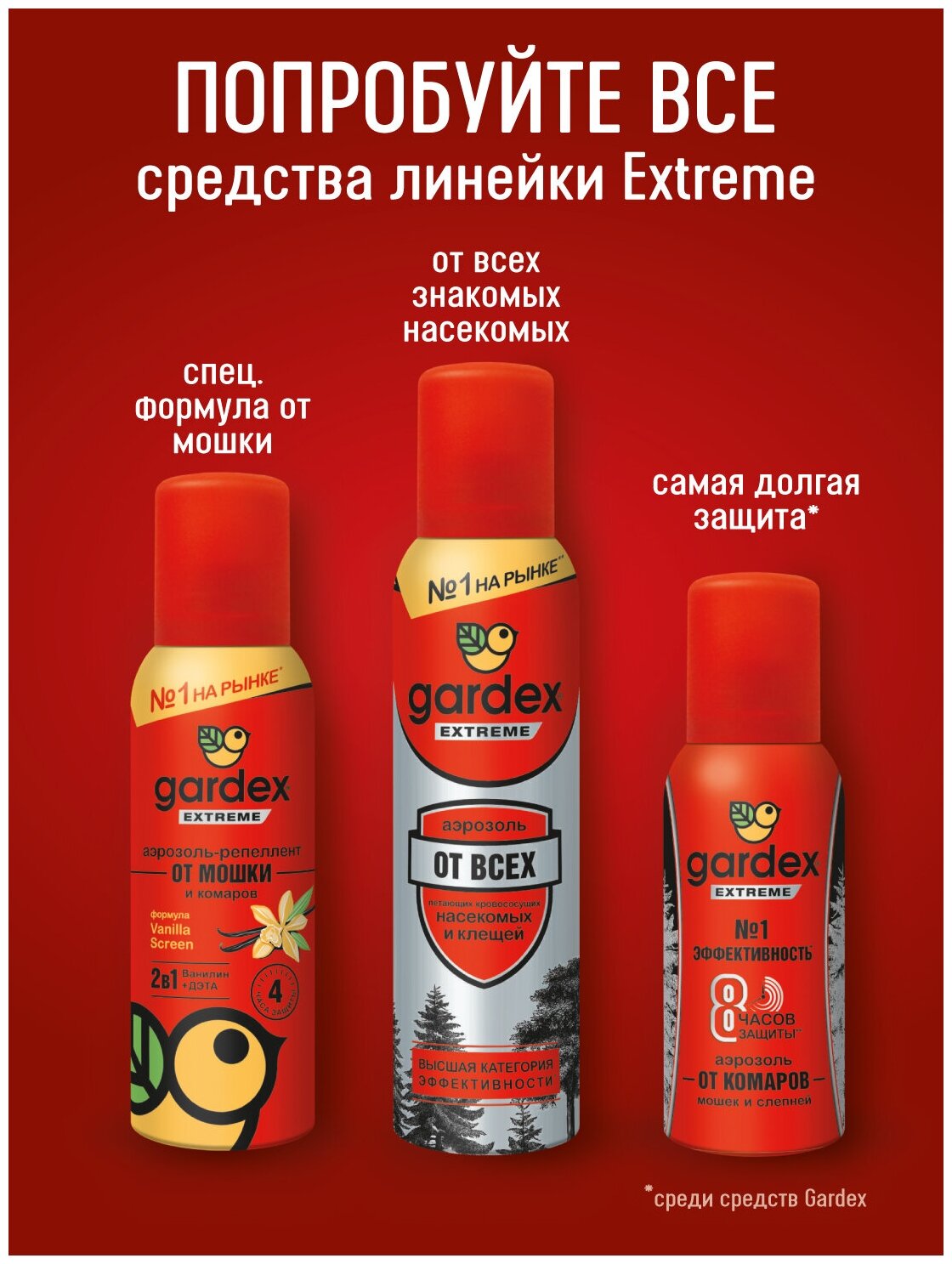 | Отзыв: | Известный в кругах любителей природы "гардекс". Именно красный тестировали в Карелии и на Камчатке. Действует, конечно, не "вечно", но спасает заметно. |