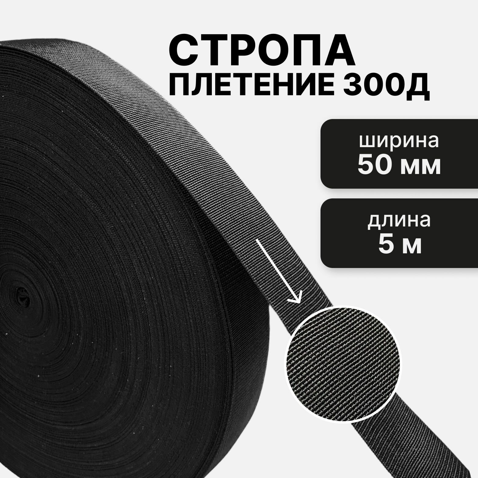 Купить Стропа текстильная ременная лента, ширина 50 мм, (плетение 300Д), черный, 5м
