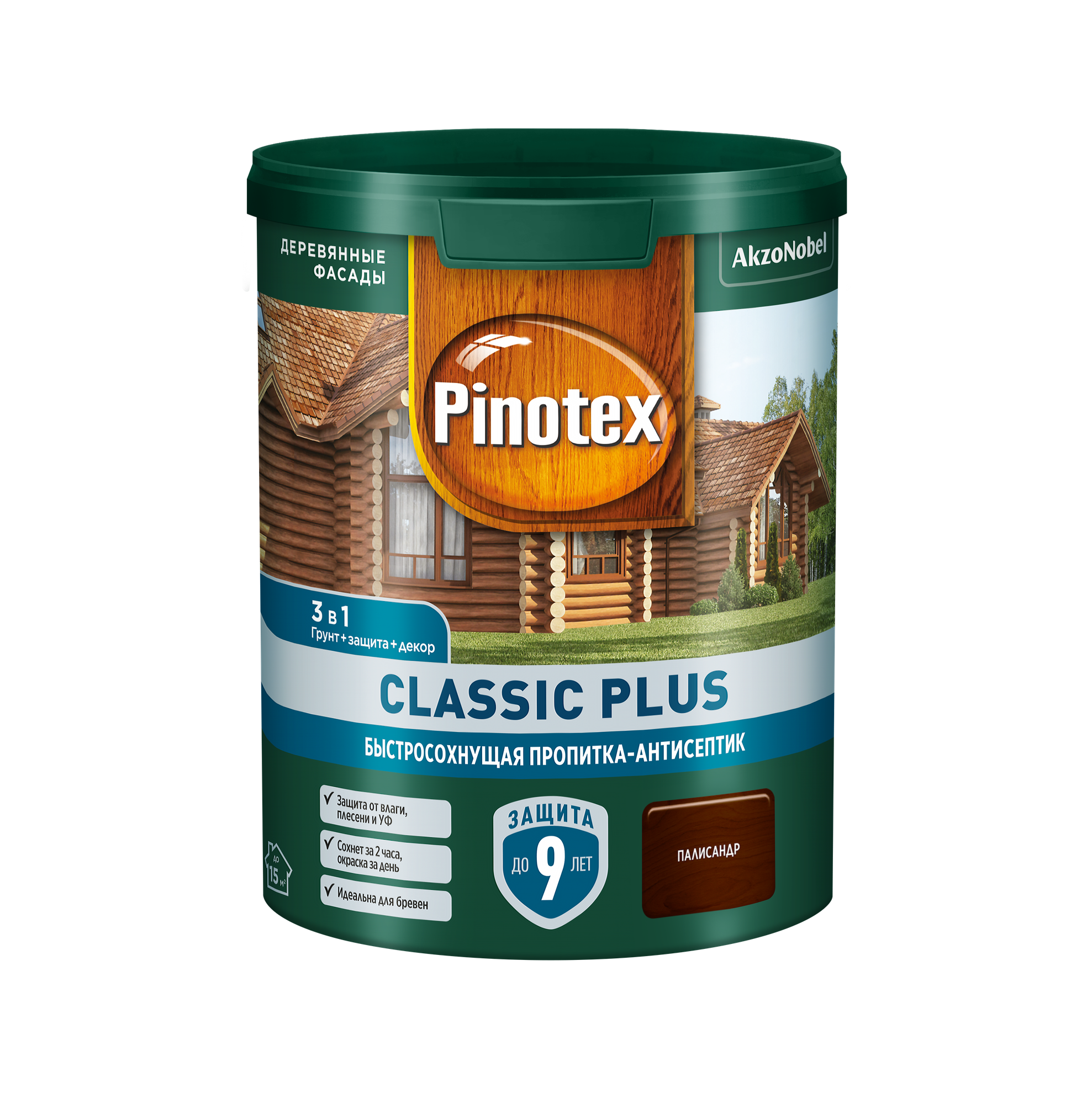 PINOTEX CLASSIC PLUS пропитка-антисептик быстросохнущая 3 в 1, палисандр (0,9л)