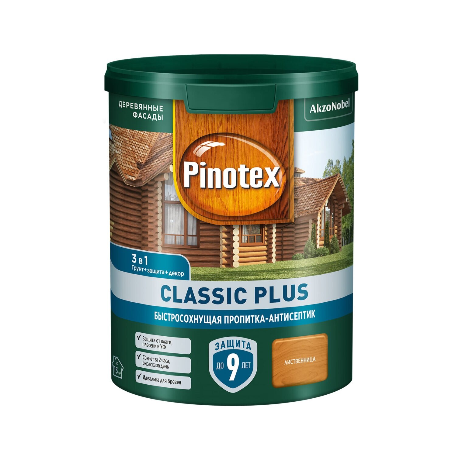 PINOTEX CLASSIC PLUS пропитка-антисептик быстросохнущая 3 в 1 лиственница 9л