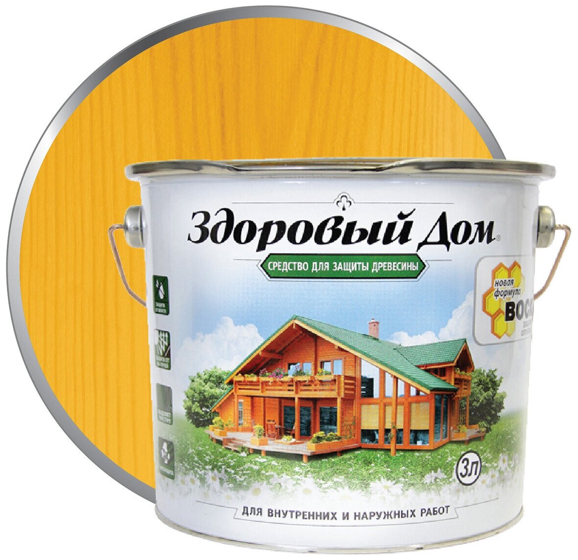 Средство для Защиты Древесины Здоровый Дом 3л Сосна, Алкидная для Внутренних и Наружных Работ.