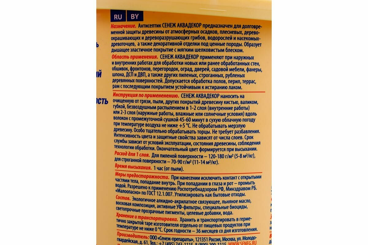 Сенеж Аквадекор лиственница 0.9 кг строительный антисептик
