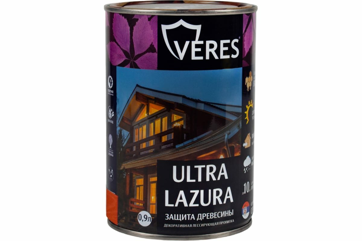 Декоративно-защитная пропитка VERES 42034 Ультра лазура № 9 палисандр 0.9 л