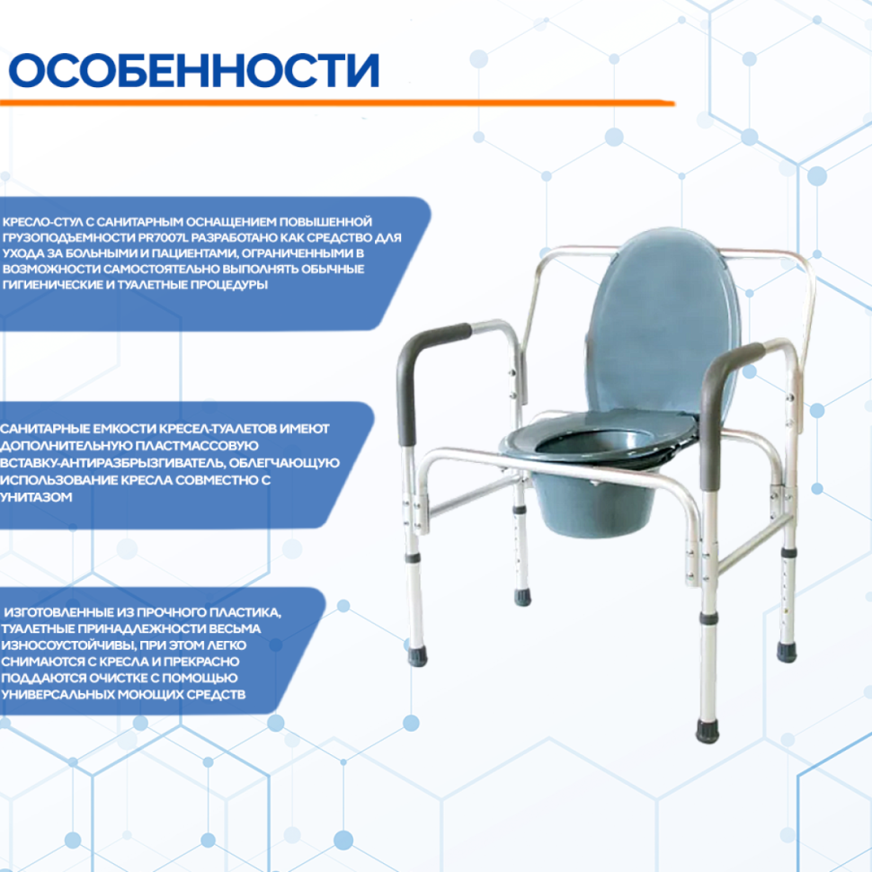 Кресло-стул с санитарным оснащением повышенной грузоподъемности (до 250 кг) HMP-7007L Мега-Оптим для взрослых, пожилых людей и инвалидов интересное: