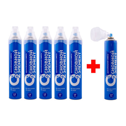 Основной Элемент Ингалятор-баллончик с газовой кислородной смесью 17 л 5 шт + 1 с мягкой маской 1 уп интересное: