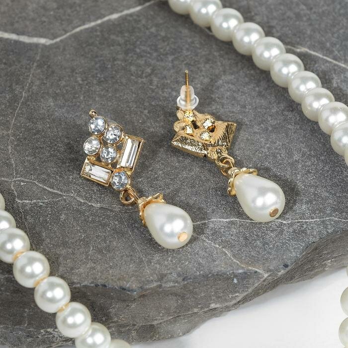 Купить Набор 2 предмета: серьги, колье «Антуанетта» гранж, цвет белый в золоте, 40 см