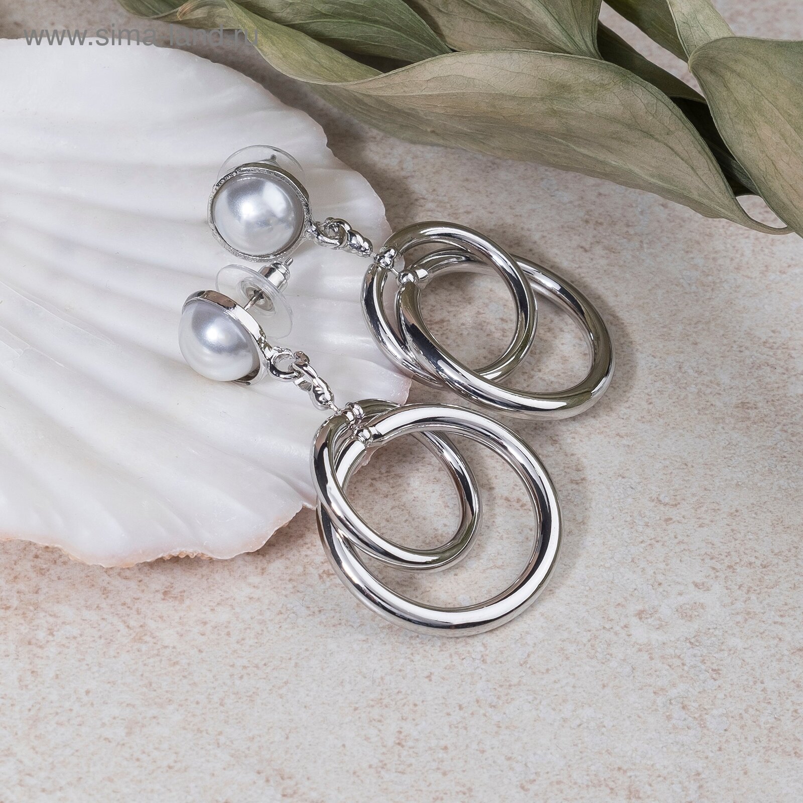 Серьги с жемчугом "Вечность", цвет белый в серебре