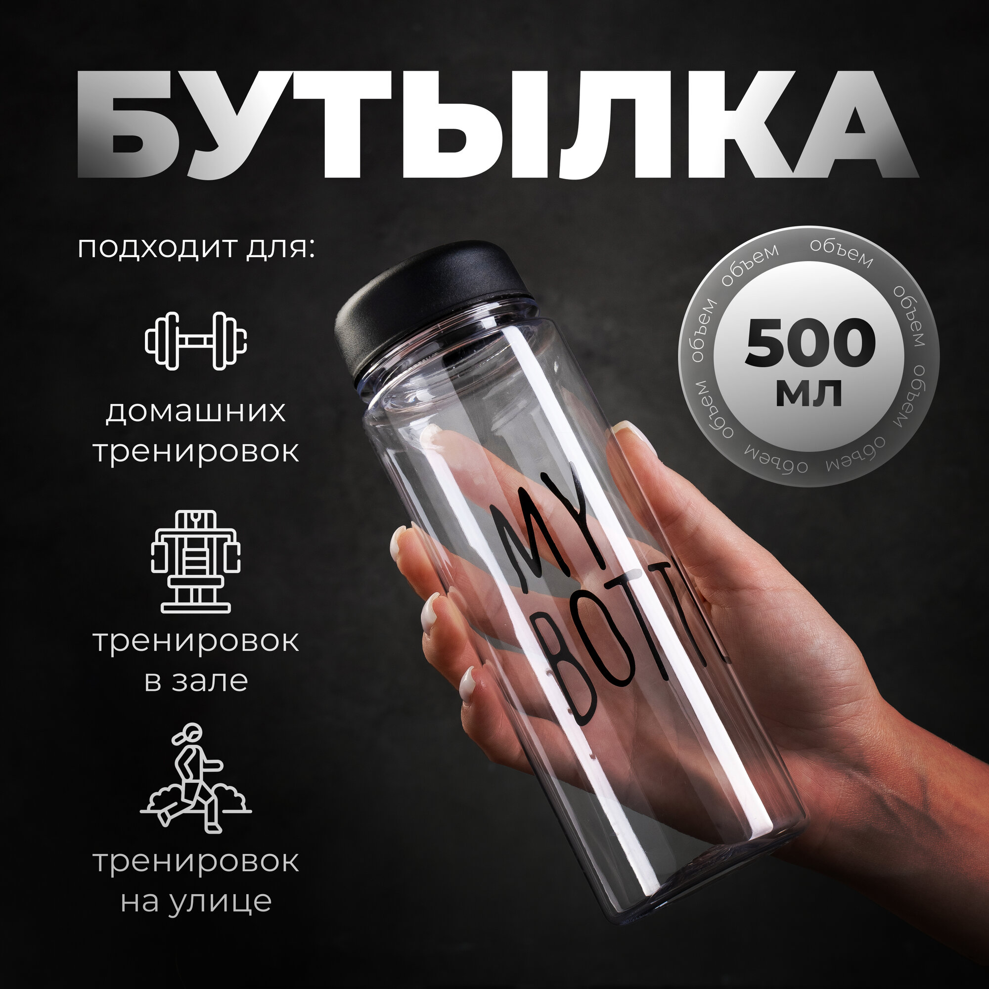 Бутылка для воды, объем 500 мл, черный интересное: