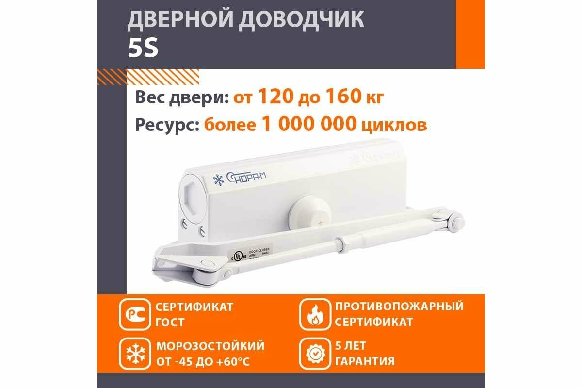 Доводчик дверной Нора-М 5S (морозостойкий для тяжелых дверей 120-160кг) - Белый