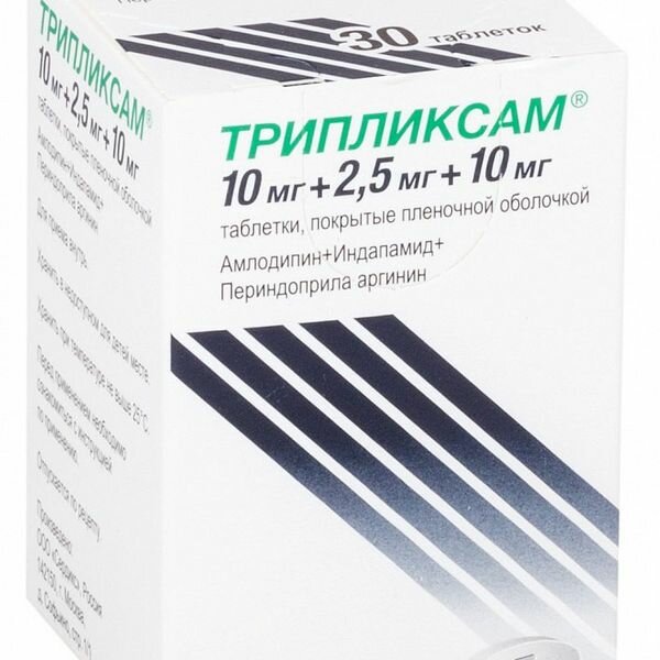 Трипликсам таб. п/о плен., 10 мг+2.5 мг+10 мг, 30 шт.