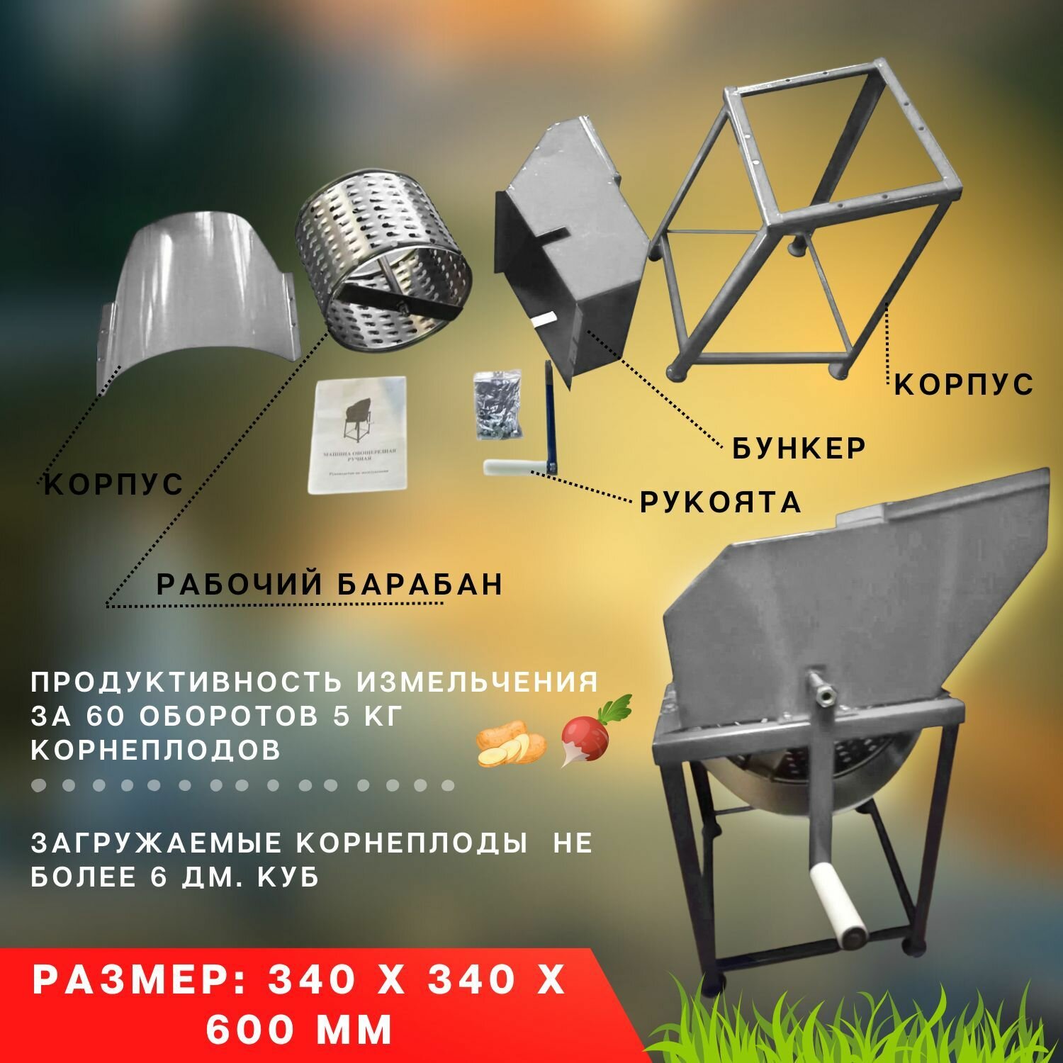 Ручной кормоизмельчитель усиленный вал , барабан с гальваническим покрытием интересное: