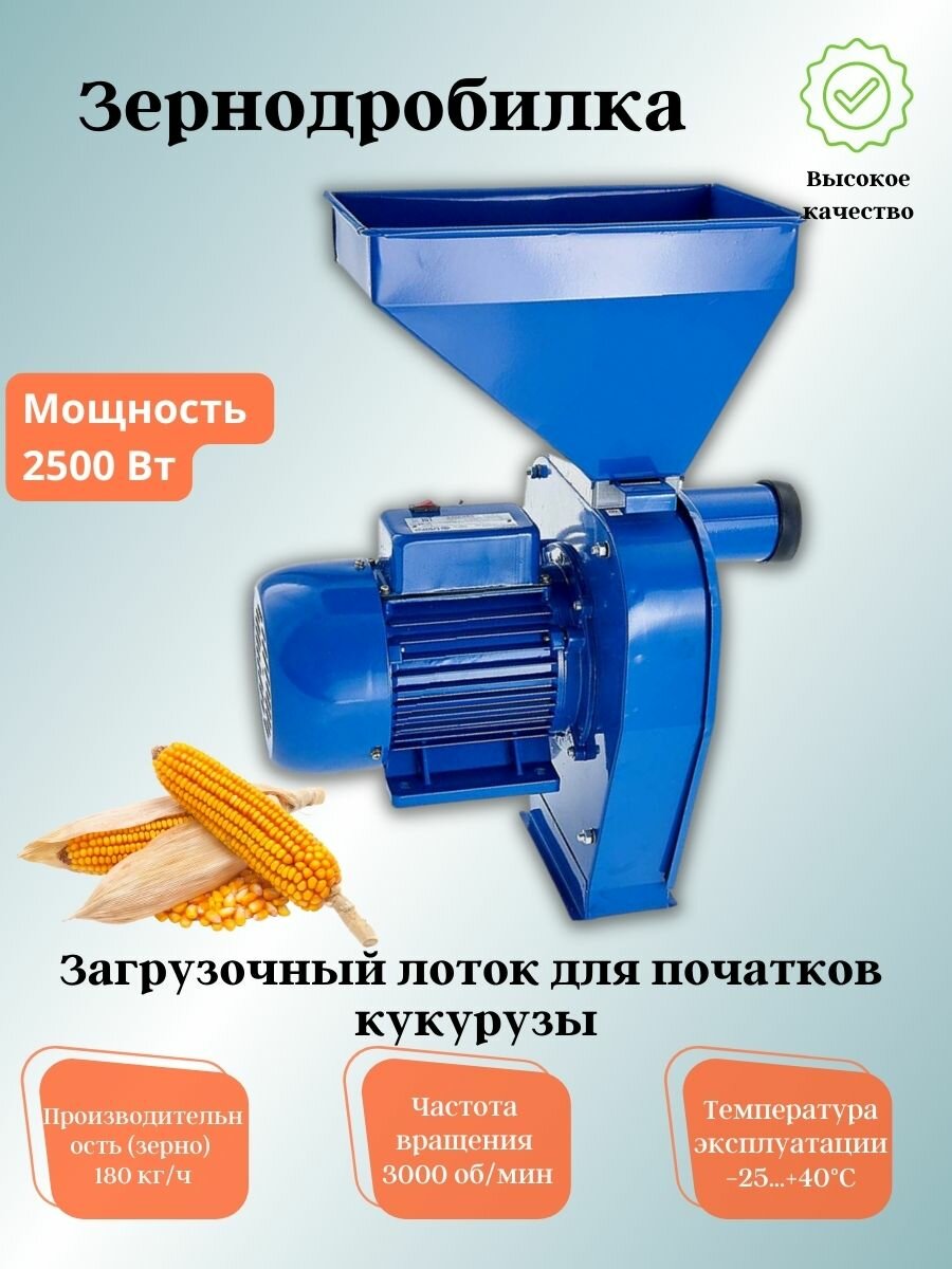 | Дополнительная информация | производительность: зерно 180 кг/ч , кукуруза 85 кг/ч; асинхронный двигатель; температура эксплуатации −25...+40°С |
