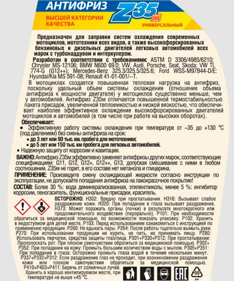 | Дополнительная информация | При замене антифриза рекомендуется промывка системы охлаждения. |