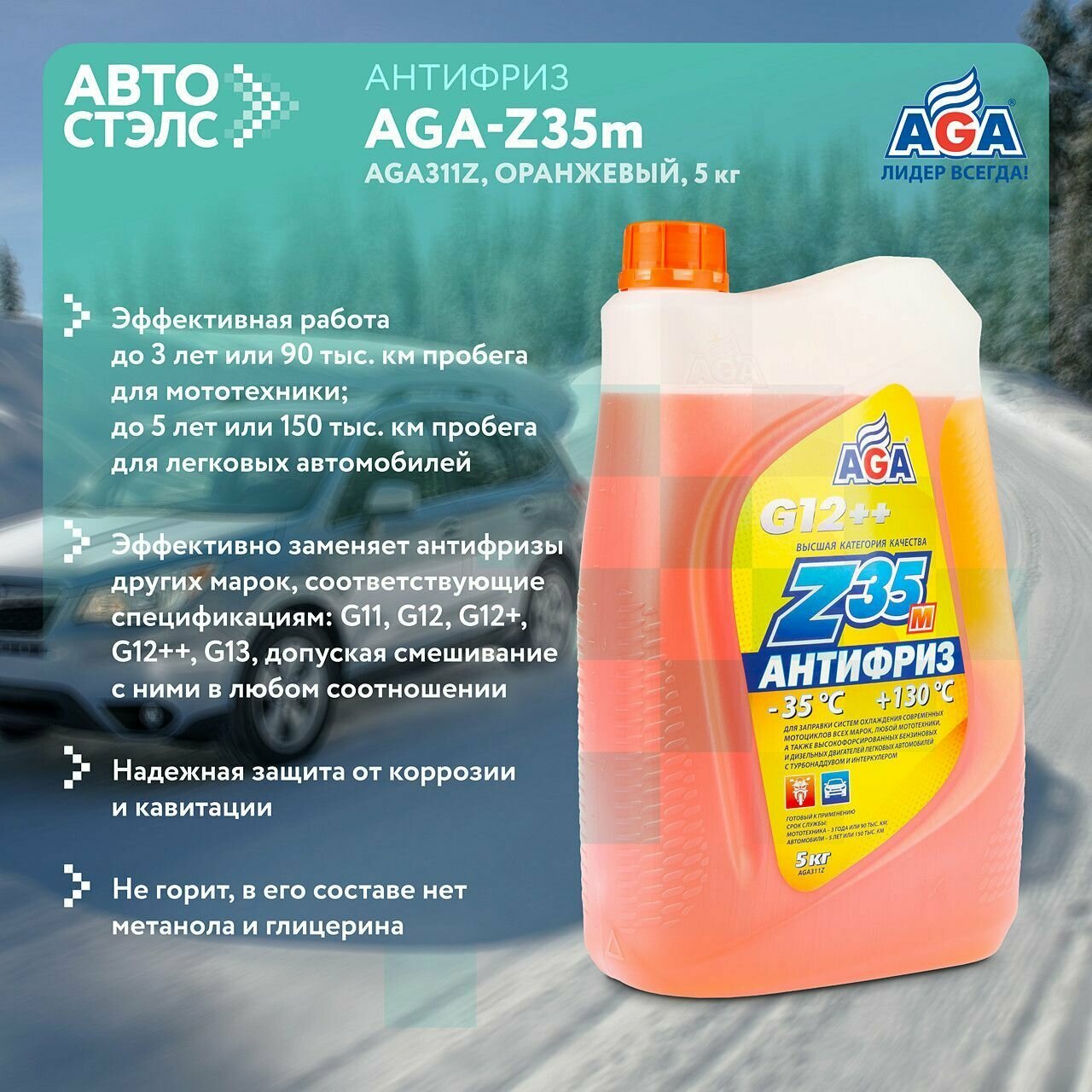 Антифриз AGA Z35м оранжевый 5 кг, G-12++ AGA311Z