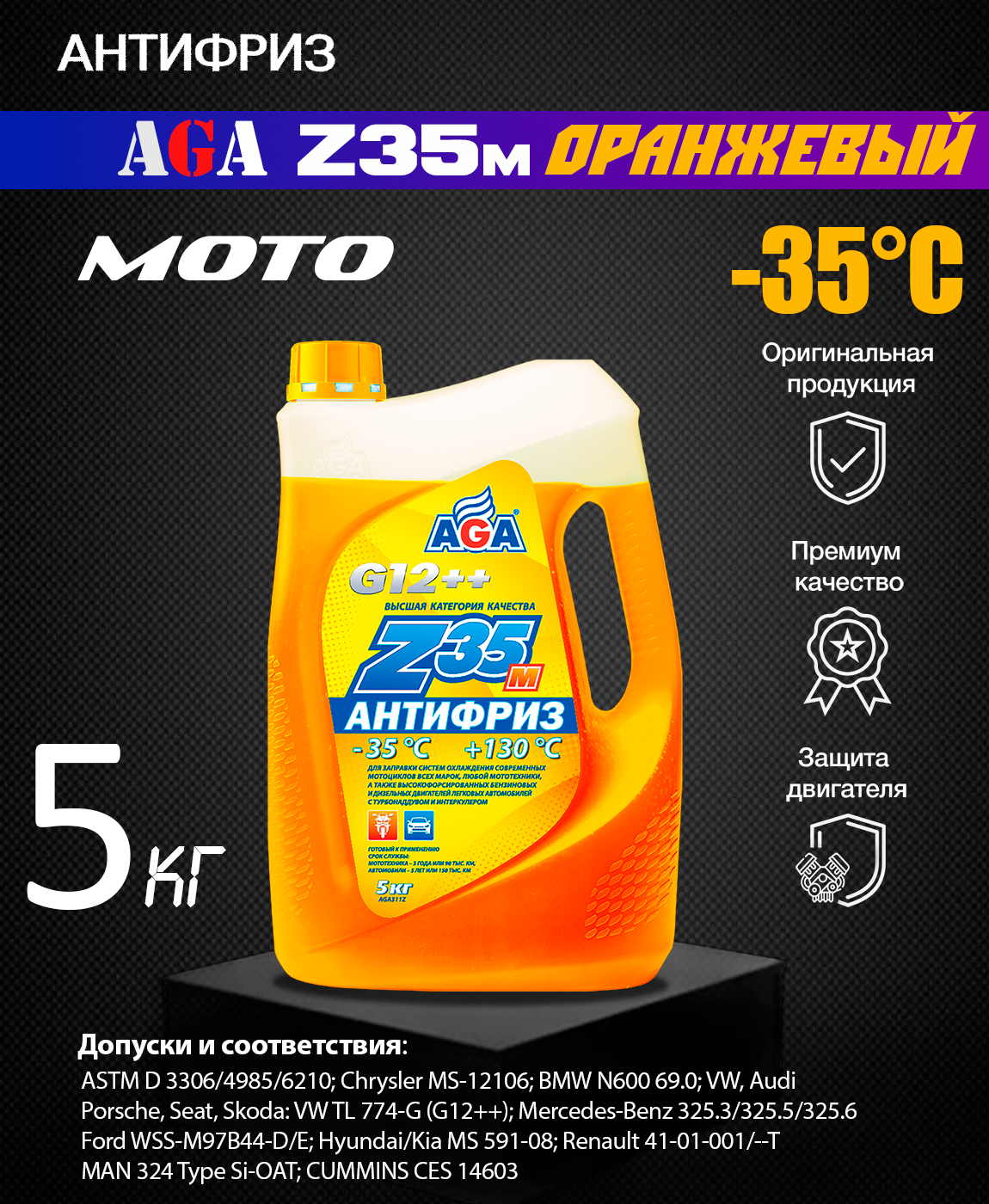 Антифриз готовый к применению оранжевый -35С 5 кг G-12++ AGA ANTIFREEZE AGA-Z35M PREMIX AGA арт. aga311z