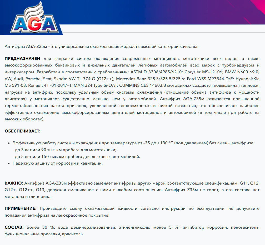 Ниже Вы можете прочитать отзывы на AGA AGA311Z Антифриз, ознакомится с подробными характеристиками, посмотреть интересные обзоры и фотографии на AGA AGA311Z Антифриз.