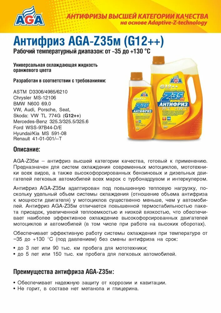 AGA AGA310Z Антифриз, AGA-Z35 оранжевый - 35, G12++ - 1 итр