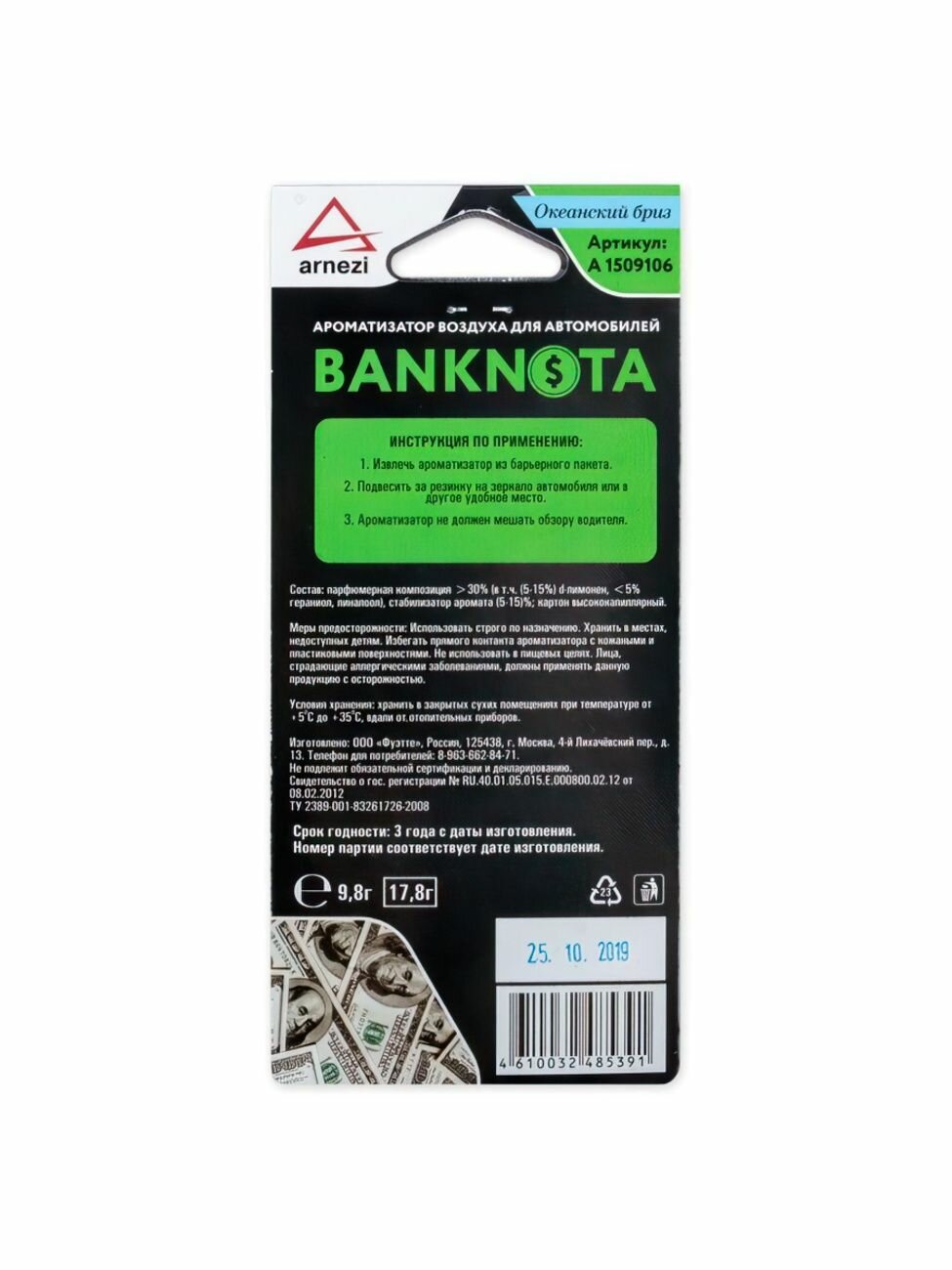 Ароматизатор для автомобиля подвесной освежитель воздуха салона, пахучка в машину со вкусом Океанский бриз банкнота 100 (сто баксов)