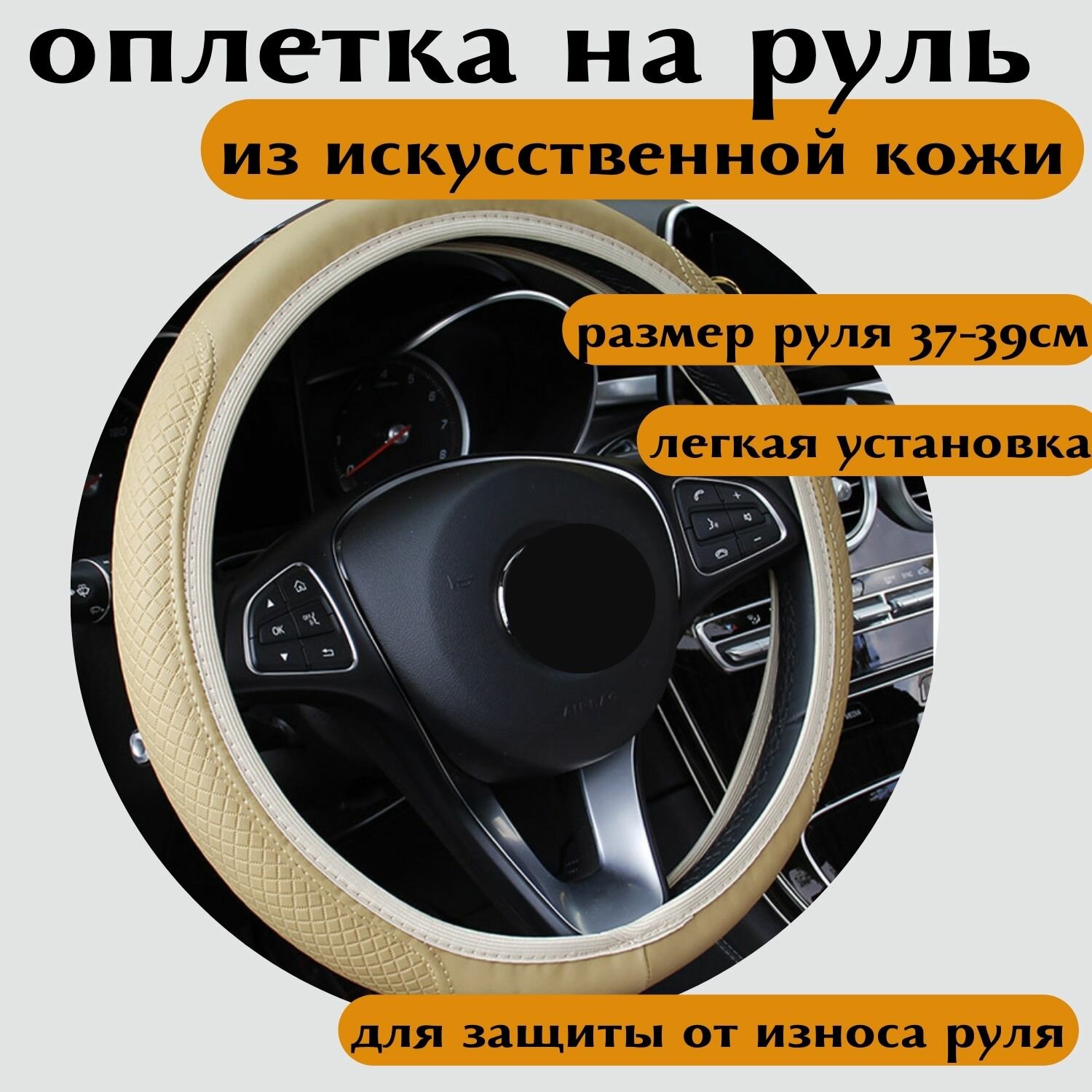 Купить Оплетка на руль из искусственной бежевая кожи размер М 37-39см