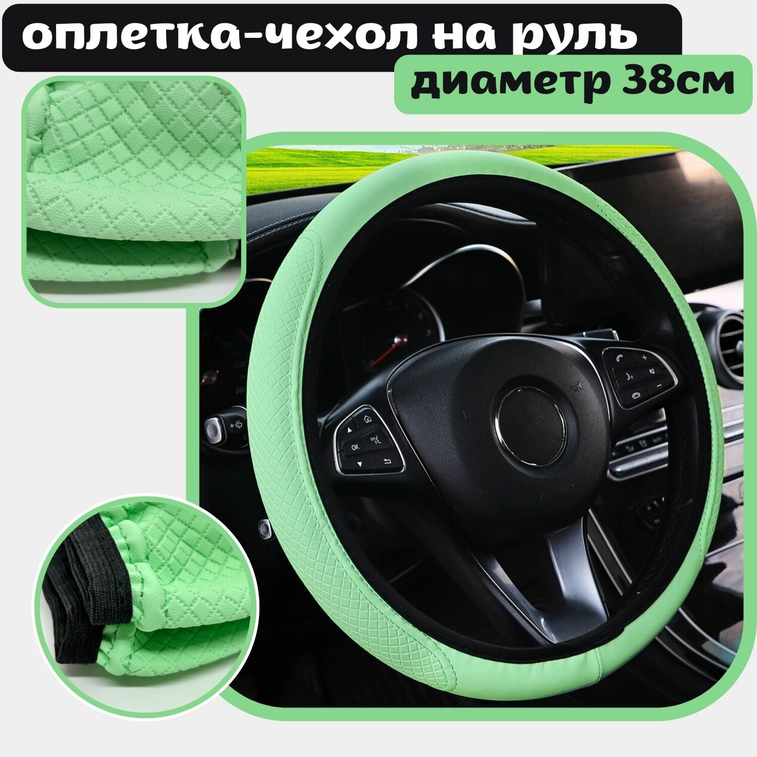 СохранитьОплетка на руль из искусственной кожи зеленая размер М 37-39см интересное: