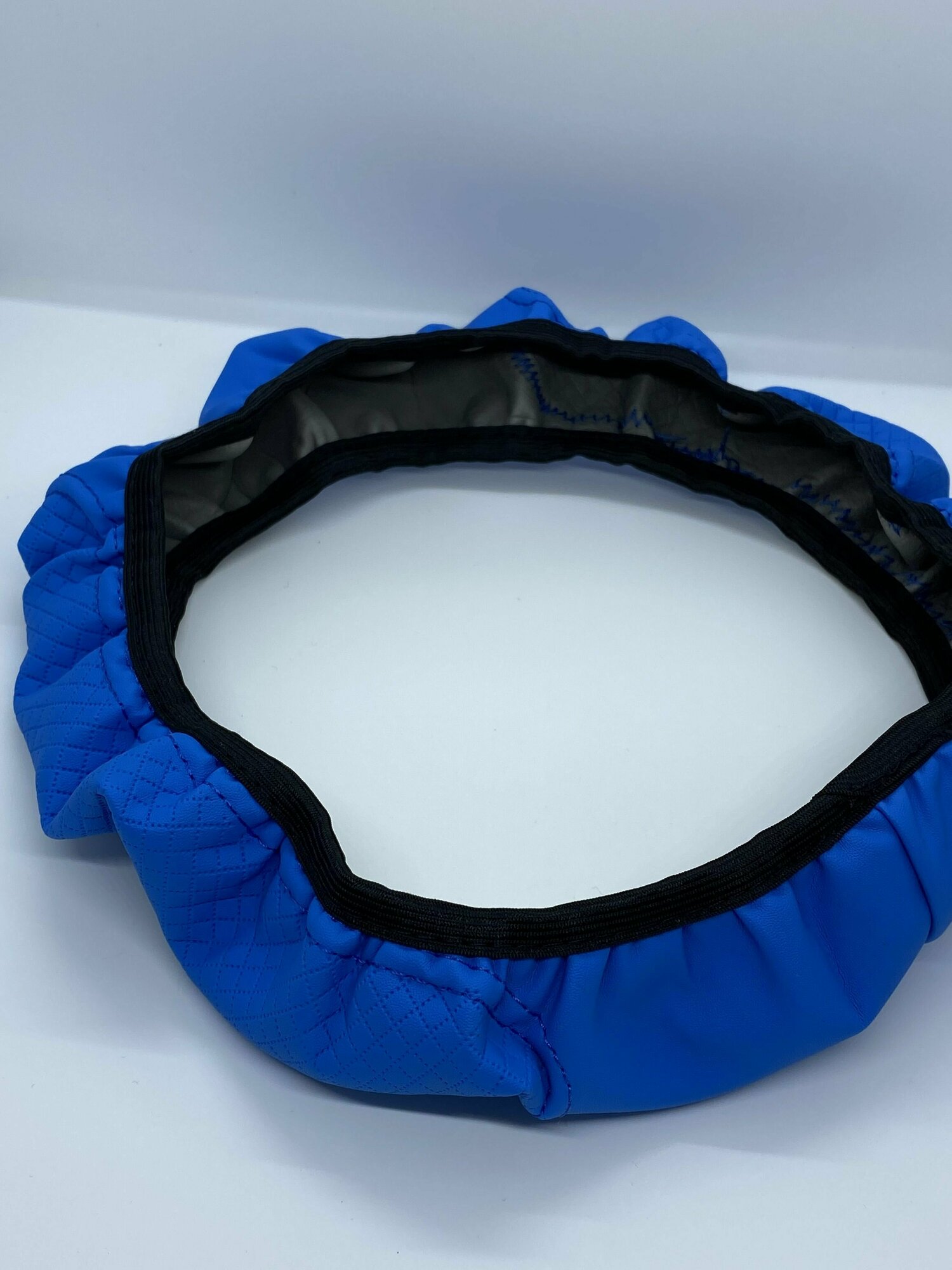 Купить Оплетка на руль из искусственной кожи синяя размер М 37-39см
