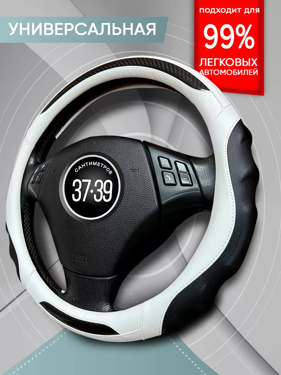 Оплетка руля Автомодель, универсальная, эко-кожа, диаметр руля 37 - 39 см