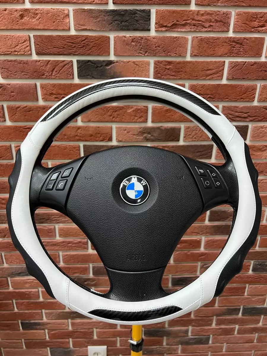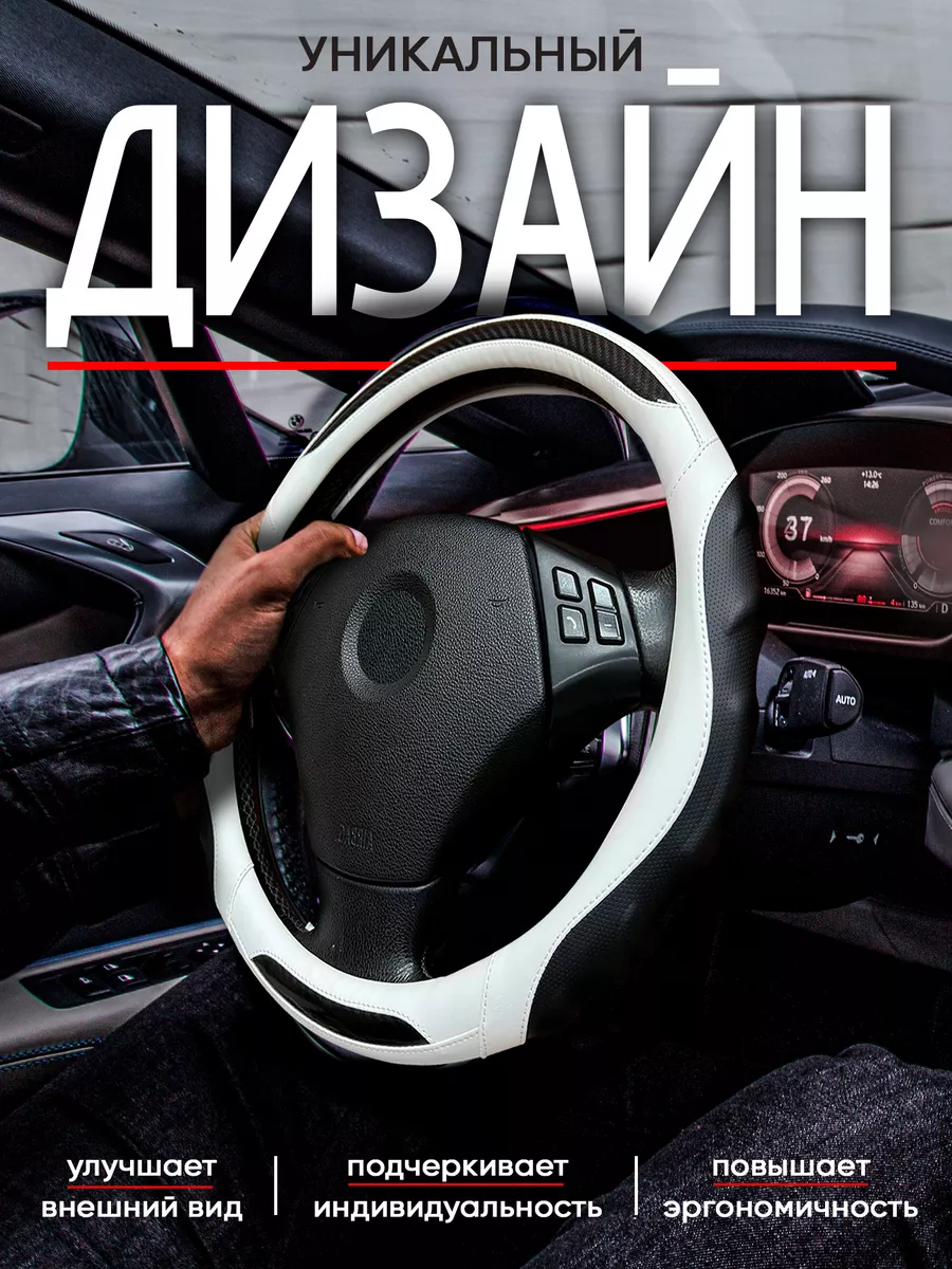 Оплетка руля Автомодель, эко-кожа, белая, 37-39 см, универсальная