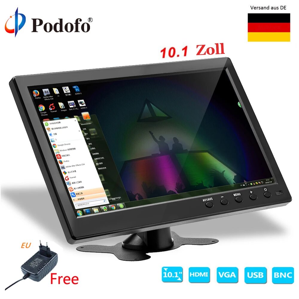 Купить Портативный ЖК-монитор Podofo, 10,1 дюйма, 2 канала, HDMI, VGA, EU Plug
