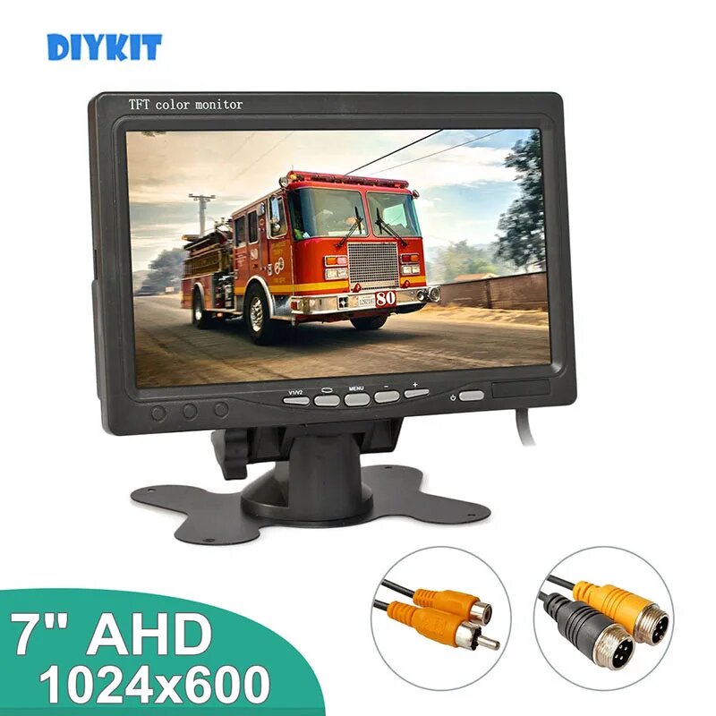Автомобильный HD-монитор DIYKIT 1024x600 AHD 7 дюймов TFT LCD с поддержкой камеры 1080P AHD 2x4pin видеовход