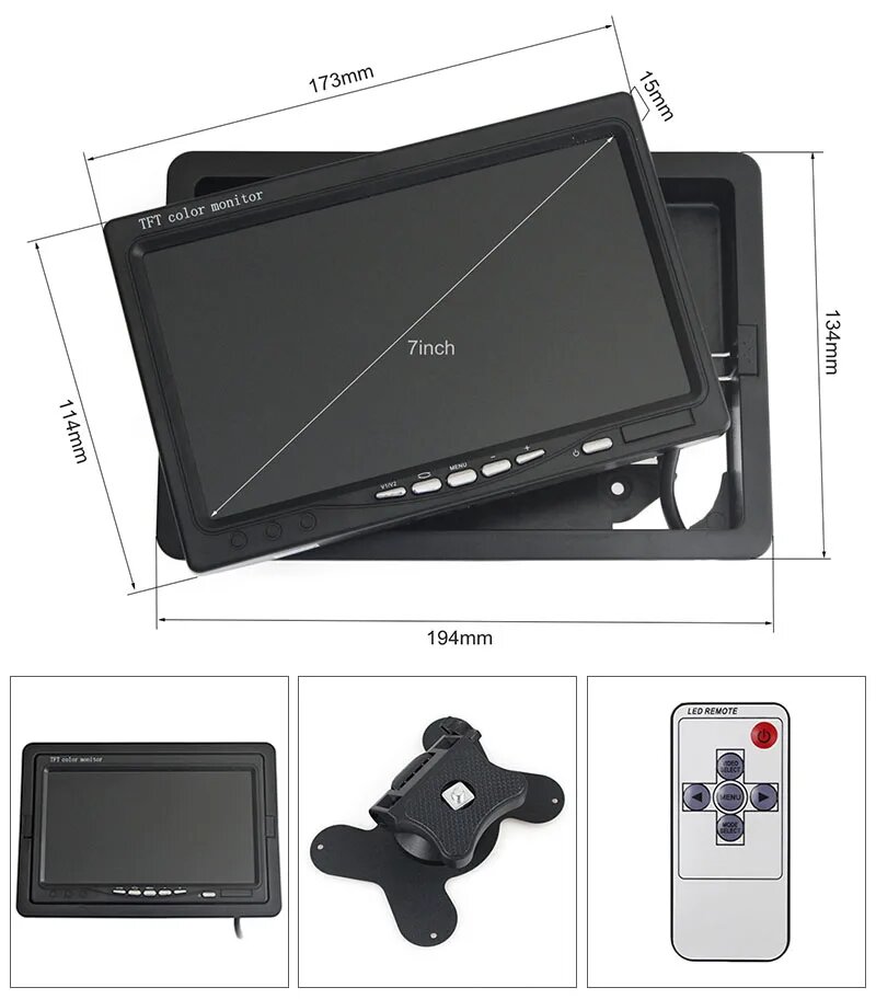 DIYKIT 1024x600 AHD 7-дюймовый TFT ЖК-монитор автомобиля HD Монитор заднего вида Поддержка 1080P AHD-камеры 2 x 4-контактный видеовход, 7inch AHD RCA интересное: