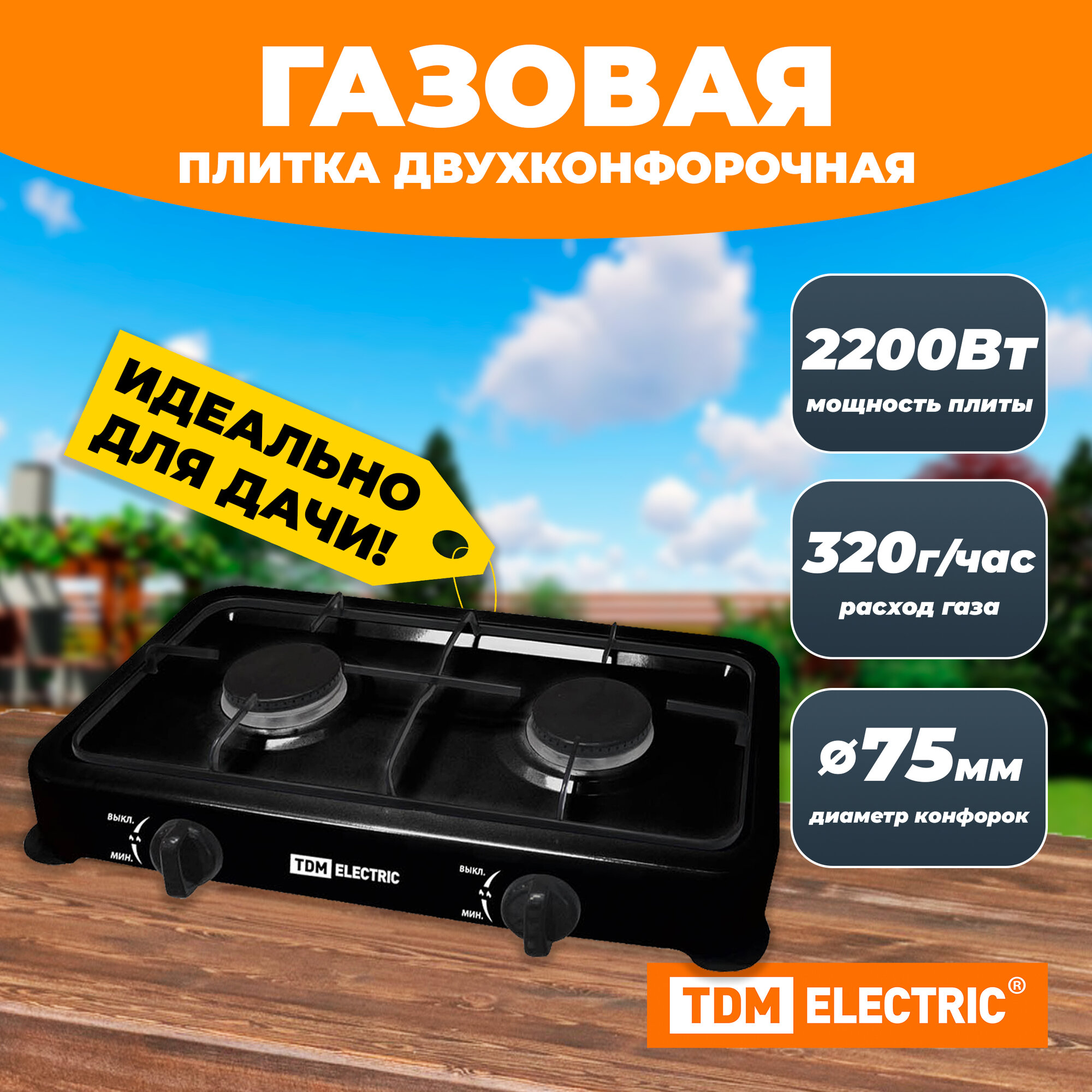 Плитка газовая двухконфорочная, ГП-2, чёрная, TDM интересное: