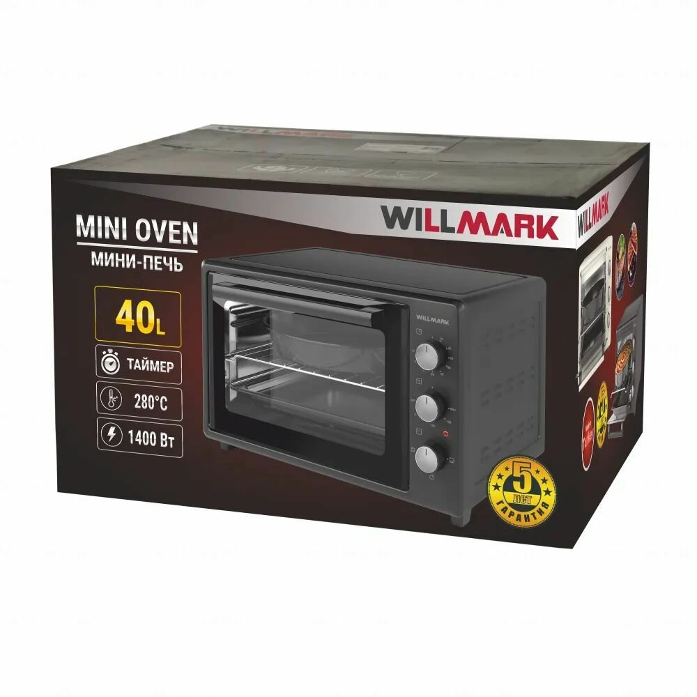 Мини-печь Willmark WOF-405BL, 1400 Вт, 40 л, таймер с отключением, подсветка камеры, черный