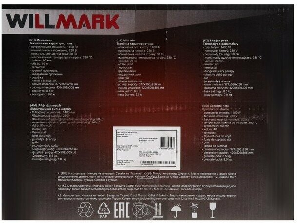 Ниже Вы можете прочитать отзывы на Мини-печь WILLMARK WOF-405BL, 1400 Вт, 40 л, таймер, до 300°С, чёрная 9787889, ознакомится с подробными характеристиками, посмотреть интересные обзоры и фотографии на Мини-печь WILLMARK WOF-405BL, 1400 Вт, 40 л, таймер, до 300°С, чёрная 9787889.