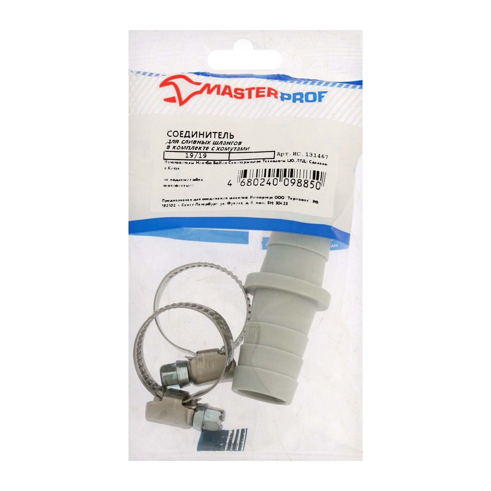 Штуцер для сливных шлангов, 19х19 мм, с хомутами, индивидуальная упаковка, MasterProf интересное:
