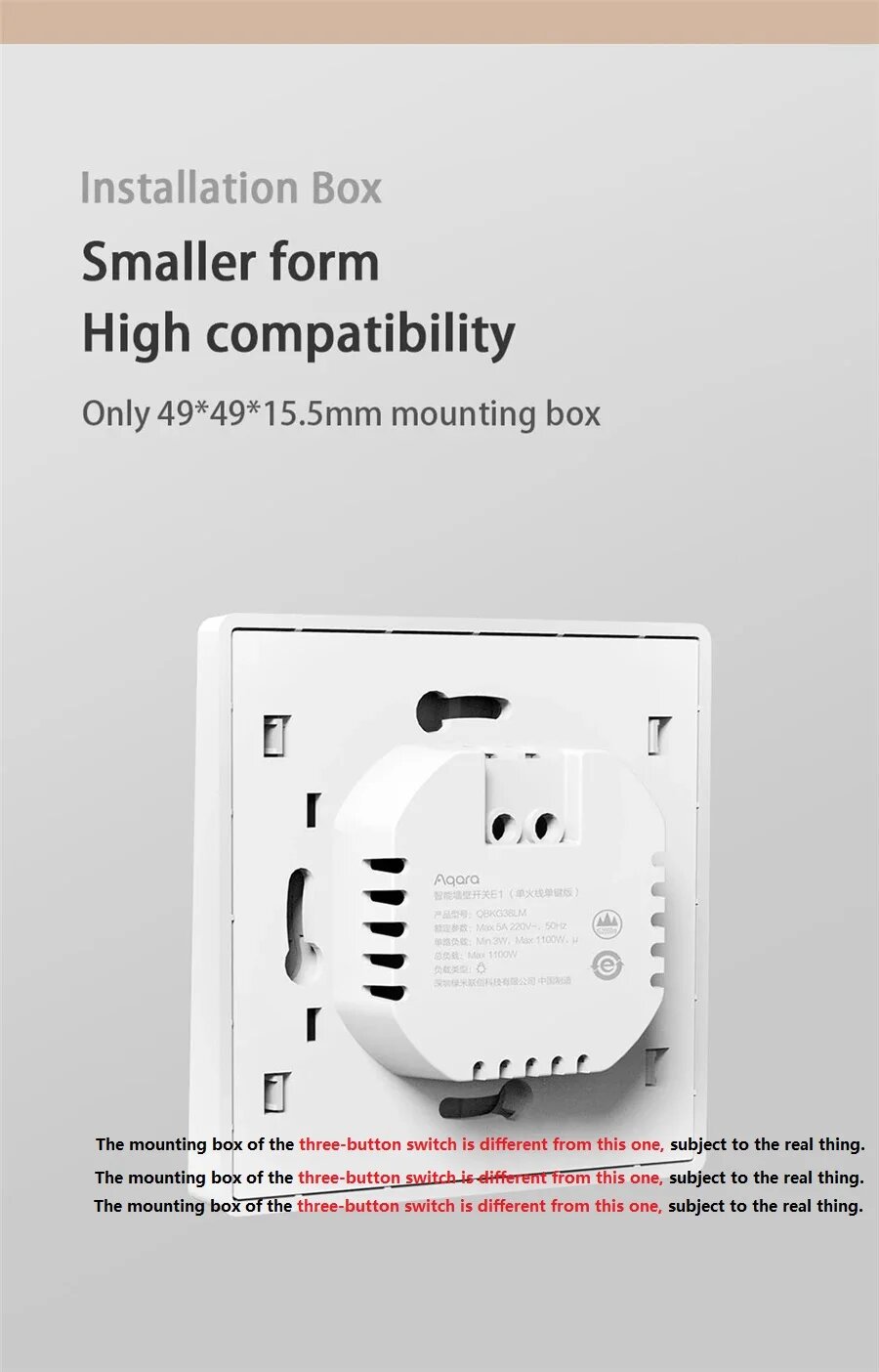 Умный настенный переключатель света Aqara E1 ZigBee 3,0, No Neutral 1 key