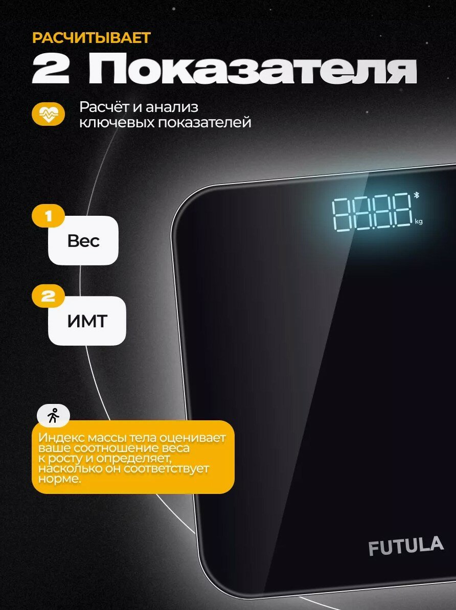 Купить Умные весы напольные Futula Scale 2 черный, анализатор ИМТ