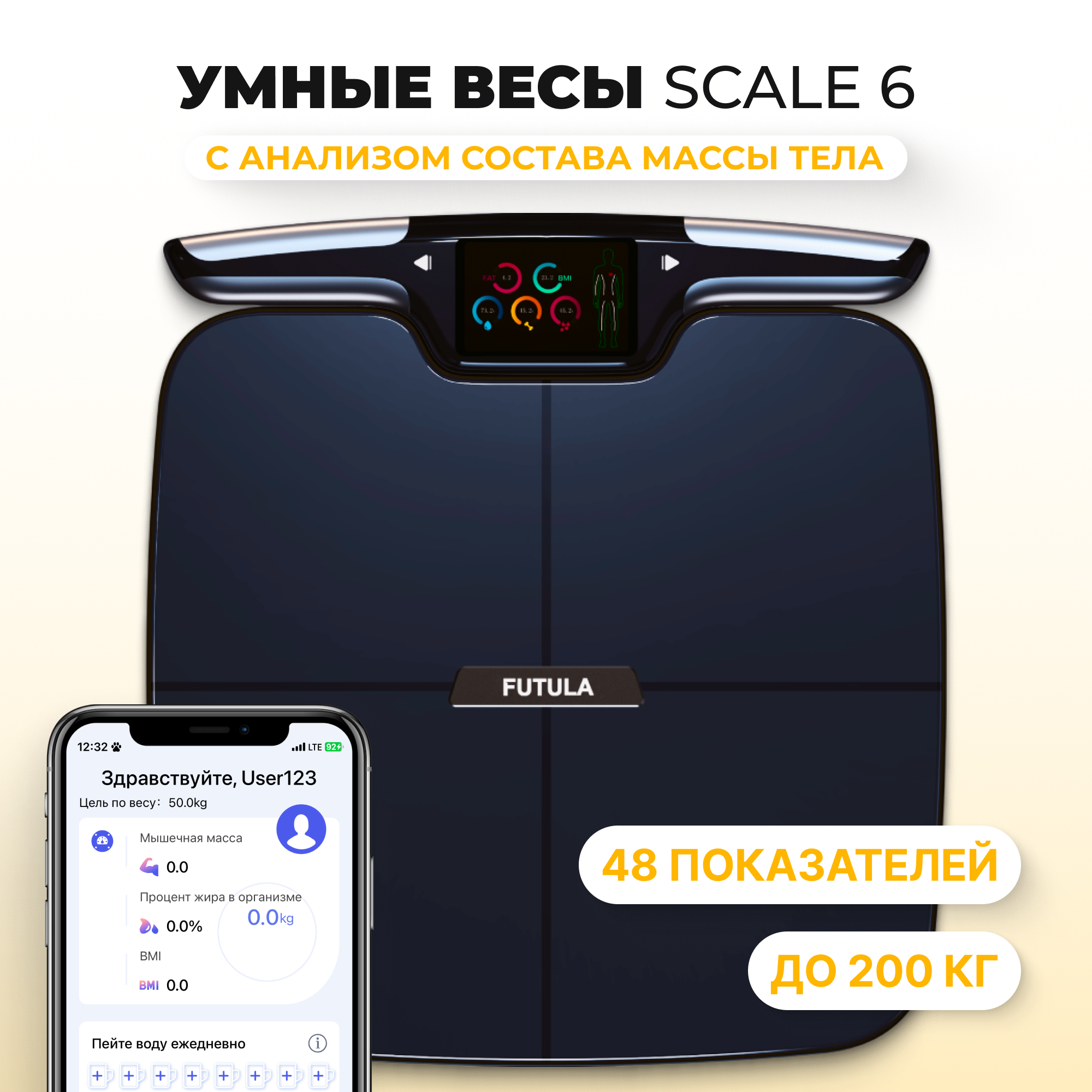 Умные весы напольные Futula Scale 6 черный, измерение 14 параметров тела интересное: