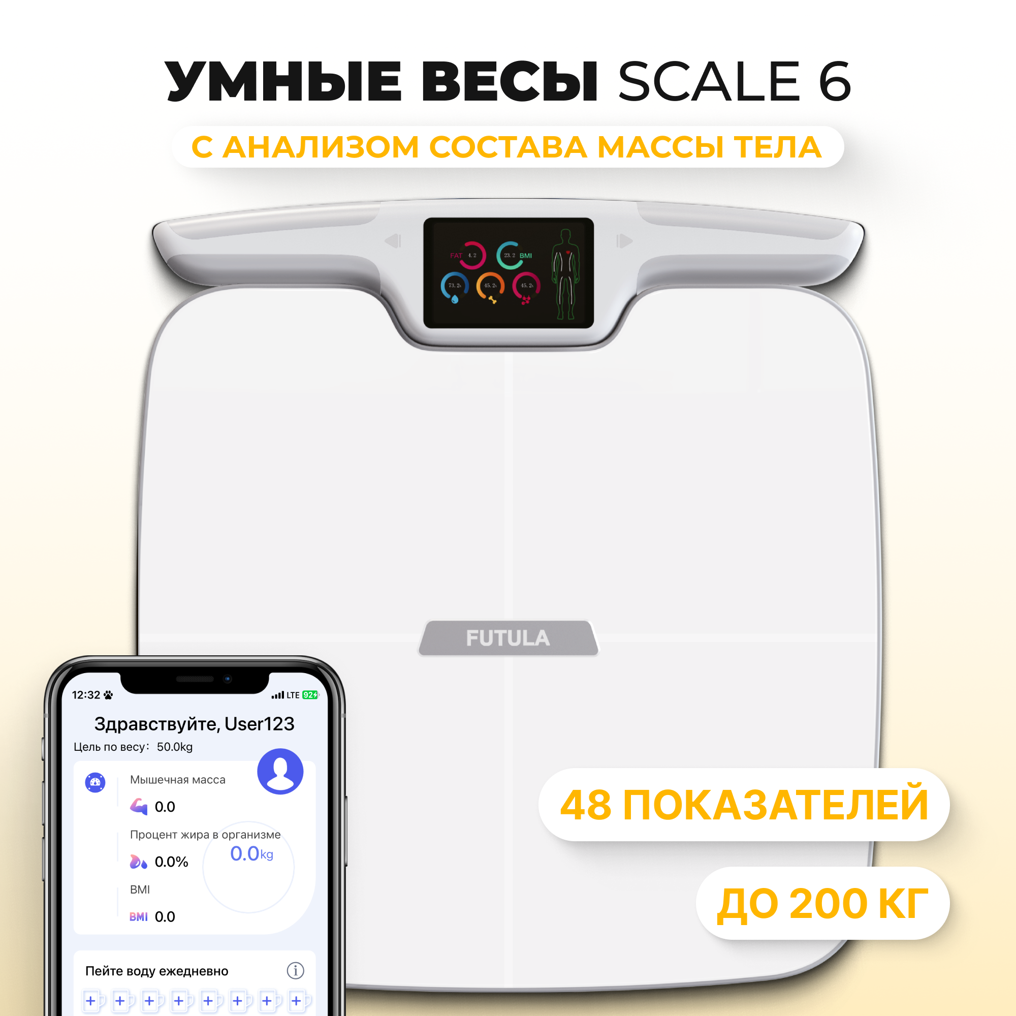 Купить Умные весы напольные Futula Scale 6 белый, измерение 14 параметров тела