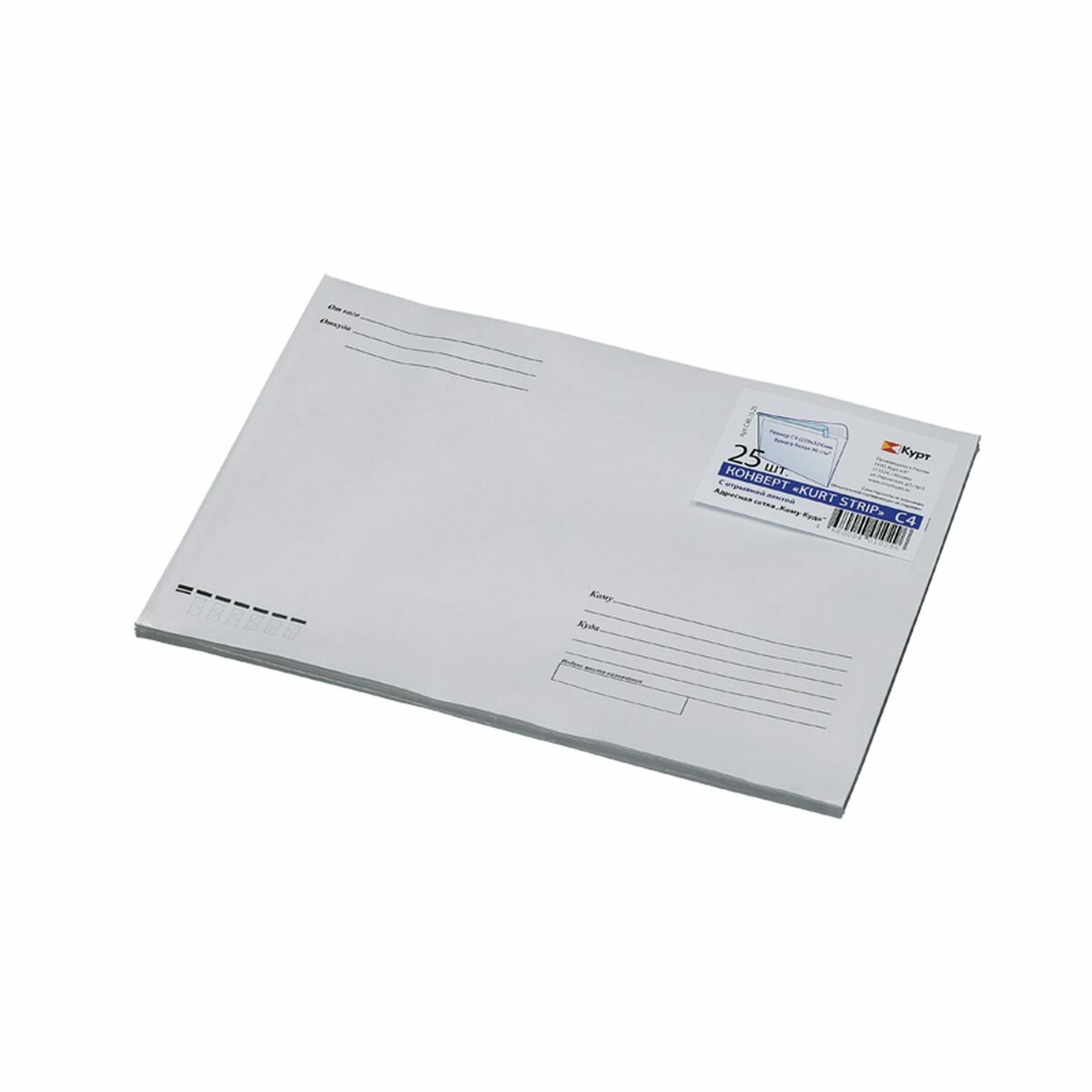Купить Конверт почтовый C4 KurtStrip (229x324мм, 90г, отрывная лента, печать "Куда-Кому") белый, 25шт. (С40.15.25)