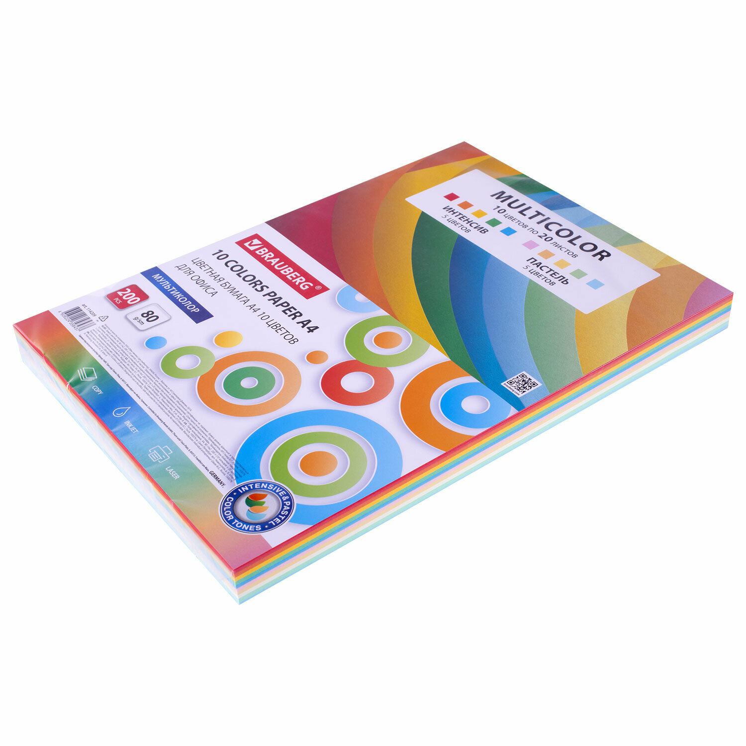 Бумага цветная для принтера офисная 10 цветов Brauberg "Multicolor", формат А4, 80 г/м2, 200 листов, (10 цветов x 20 листов), 114209 интересное:
