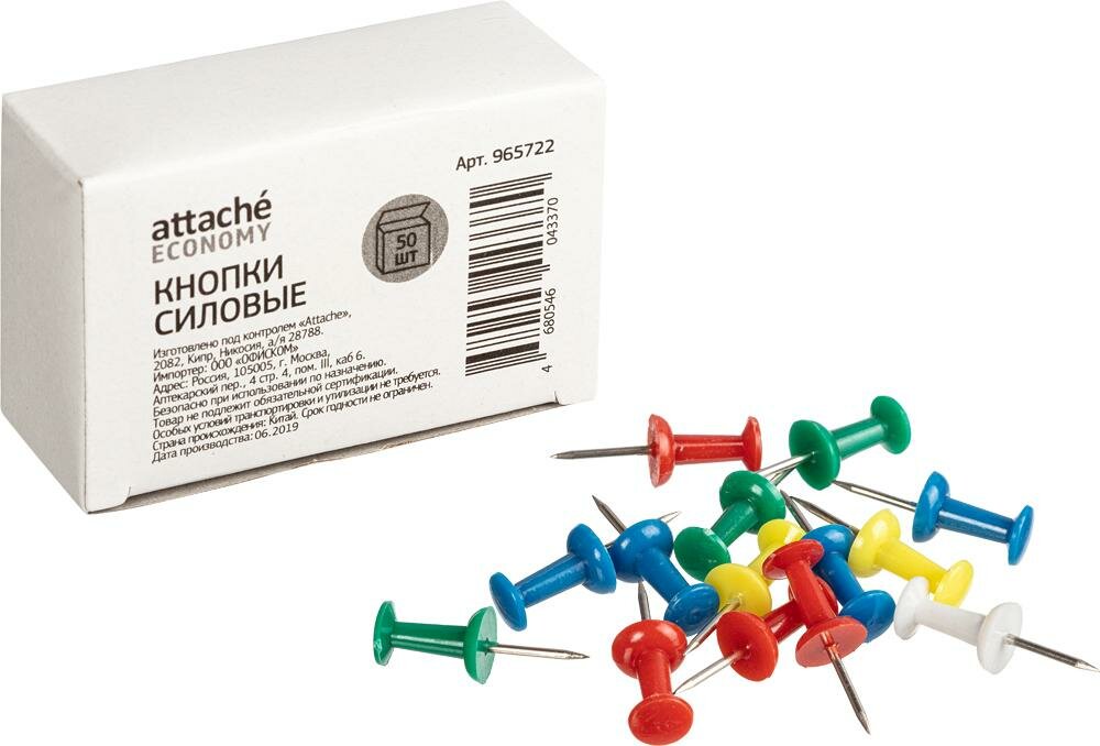 Кнопки для пробковых досок Attache силовые, 50 штук в упаковке, Economy (965722)