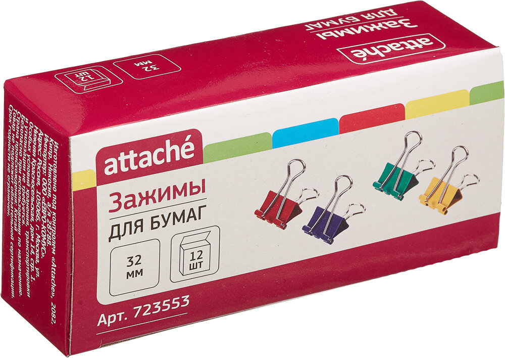Attache Зажимы для бумаг (723553) 32 мм (12 шт.) ассорти