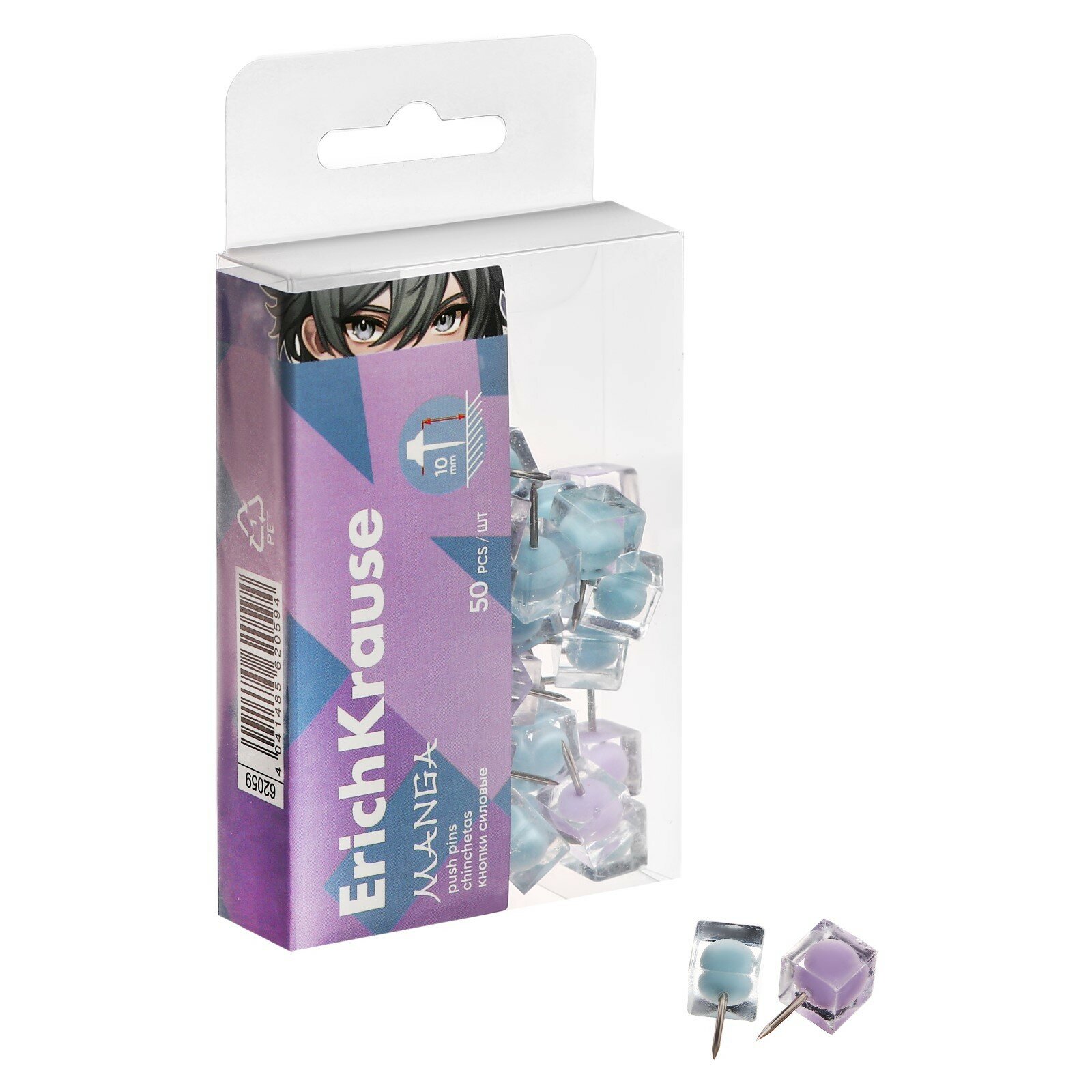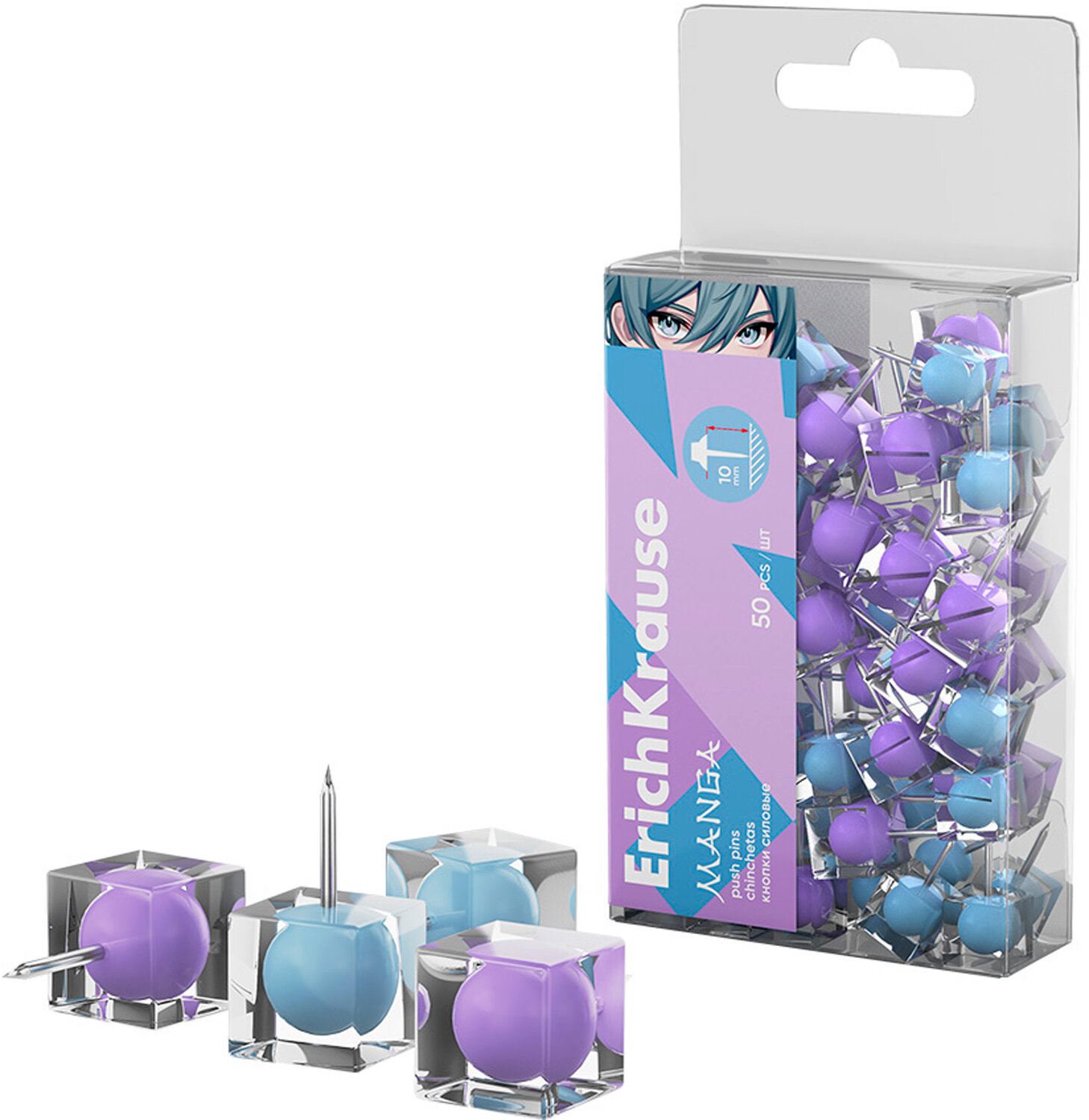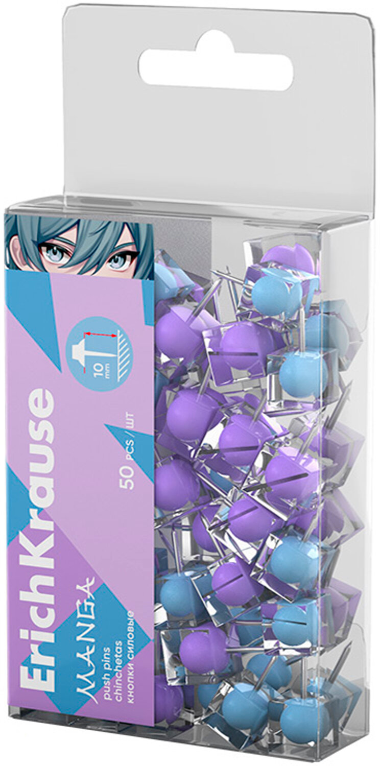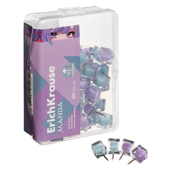 Купить Кнопки силовые ErichKrause "Manga", 50 штук, микс, в пэт-боксе