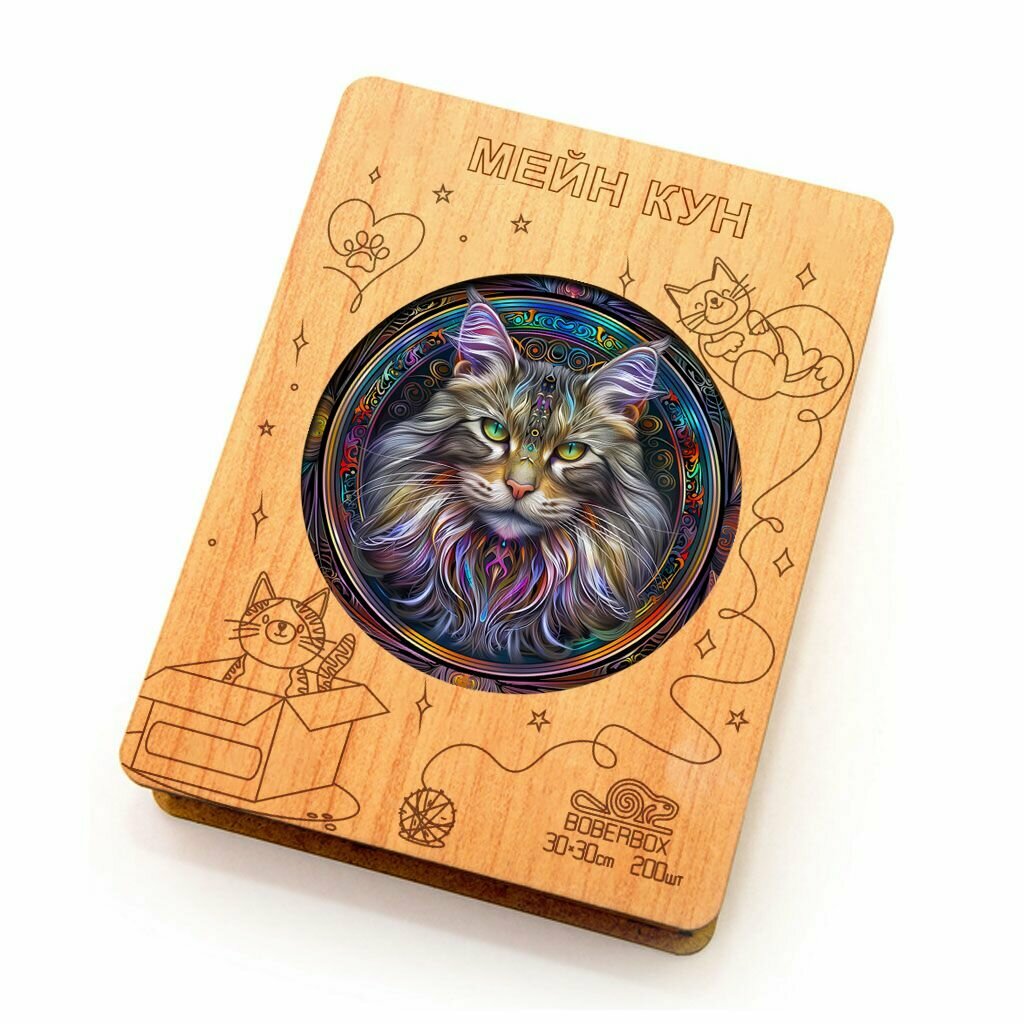 Деревянный пазл BoberBox "Мандала Сибирская кошка", 200 деталей