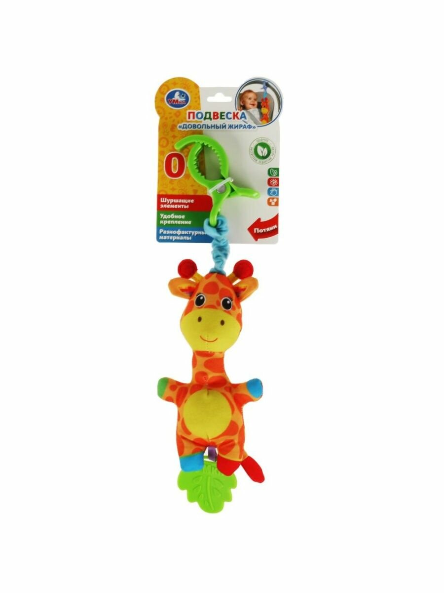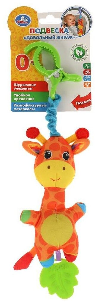 Погремушка-подвеска текстильная довольный жираф умка RPHT-G интересное: