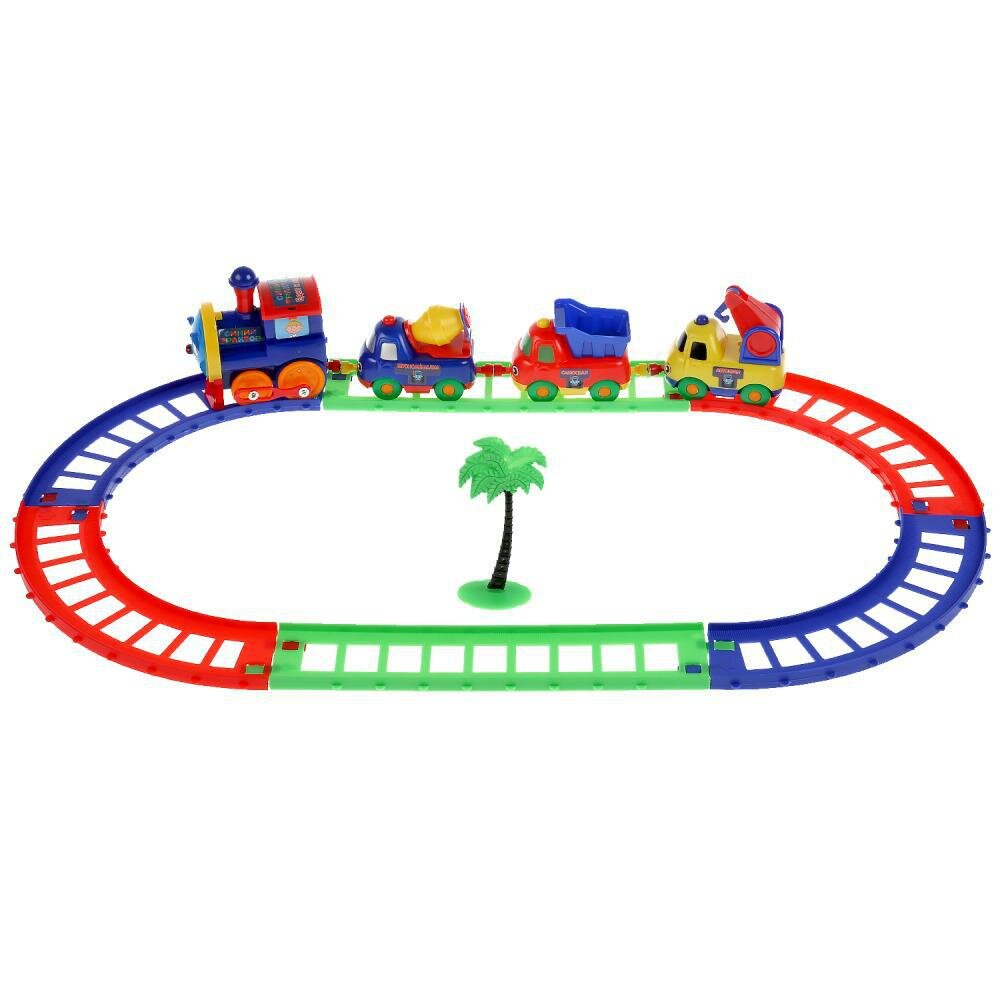 Железная дорога детская на батарейках Сини трактор Играем вместе / игрушечный поезд 90см