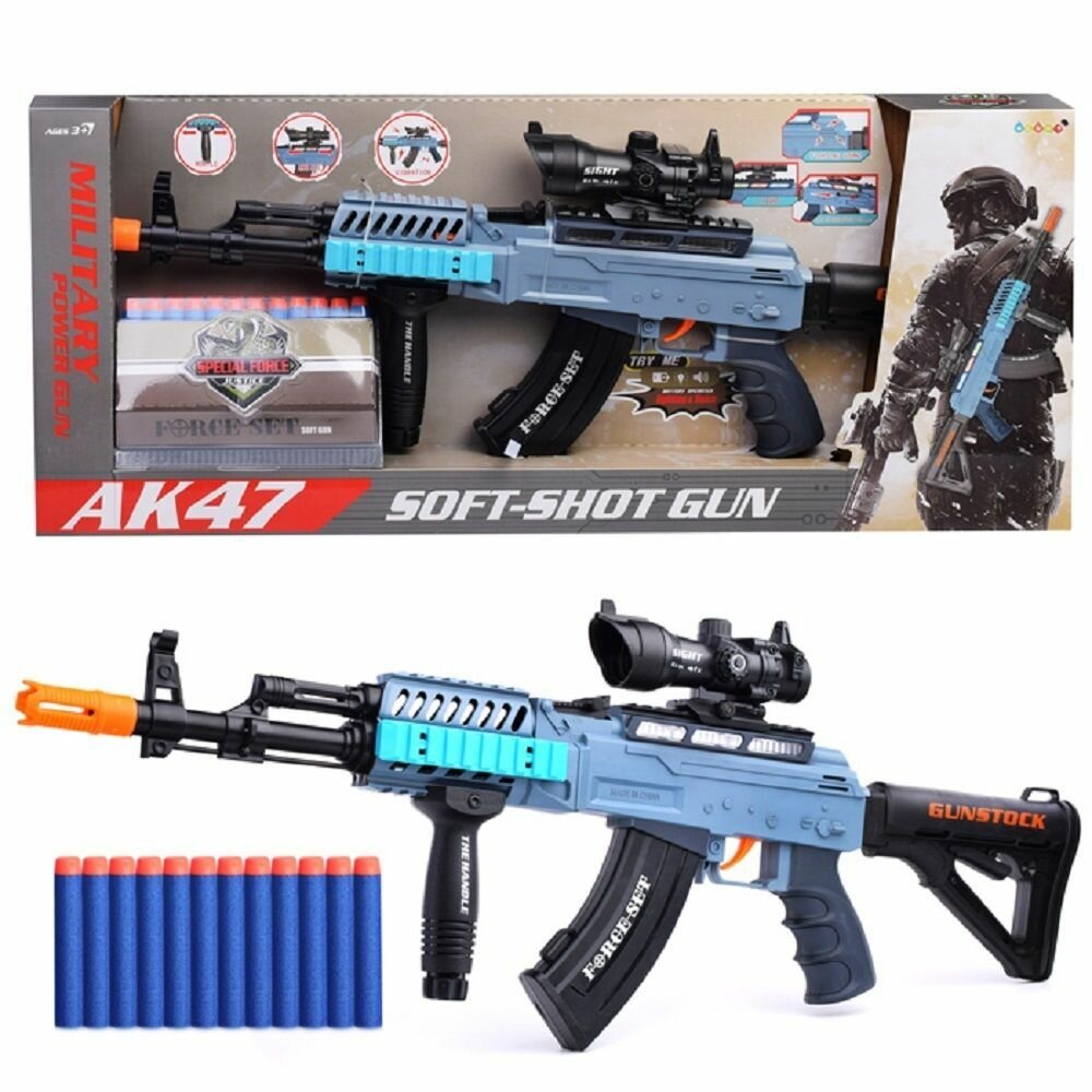 Купить Игрушечный Автомат калашникова ак 47 с прицелом, 62 х 23 см с 12 мягкими пулями, вибрация, звук и свет, детское оружие на батарейках