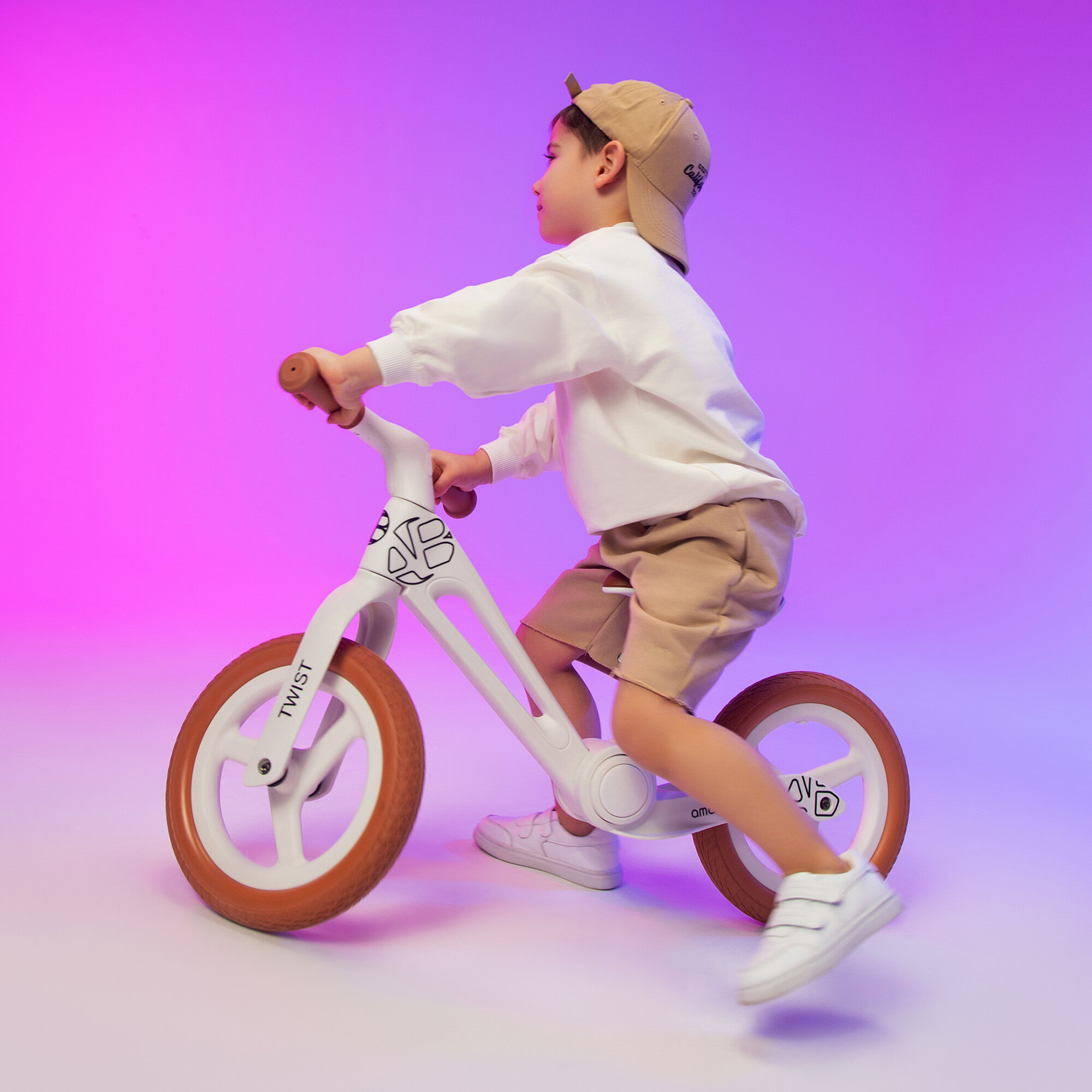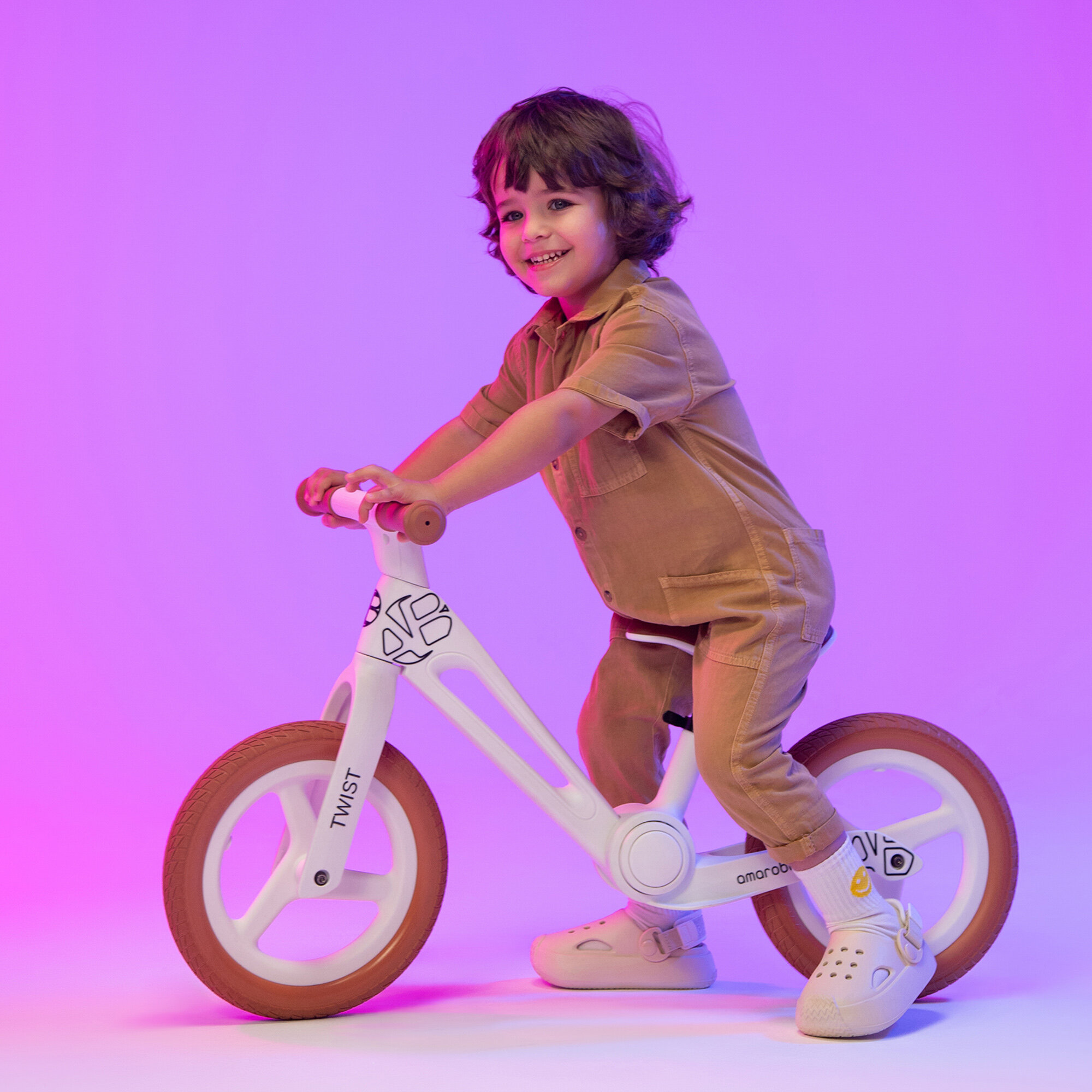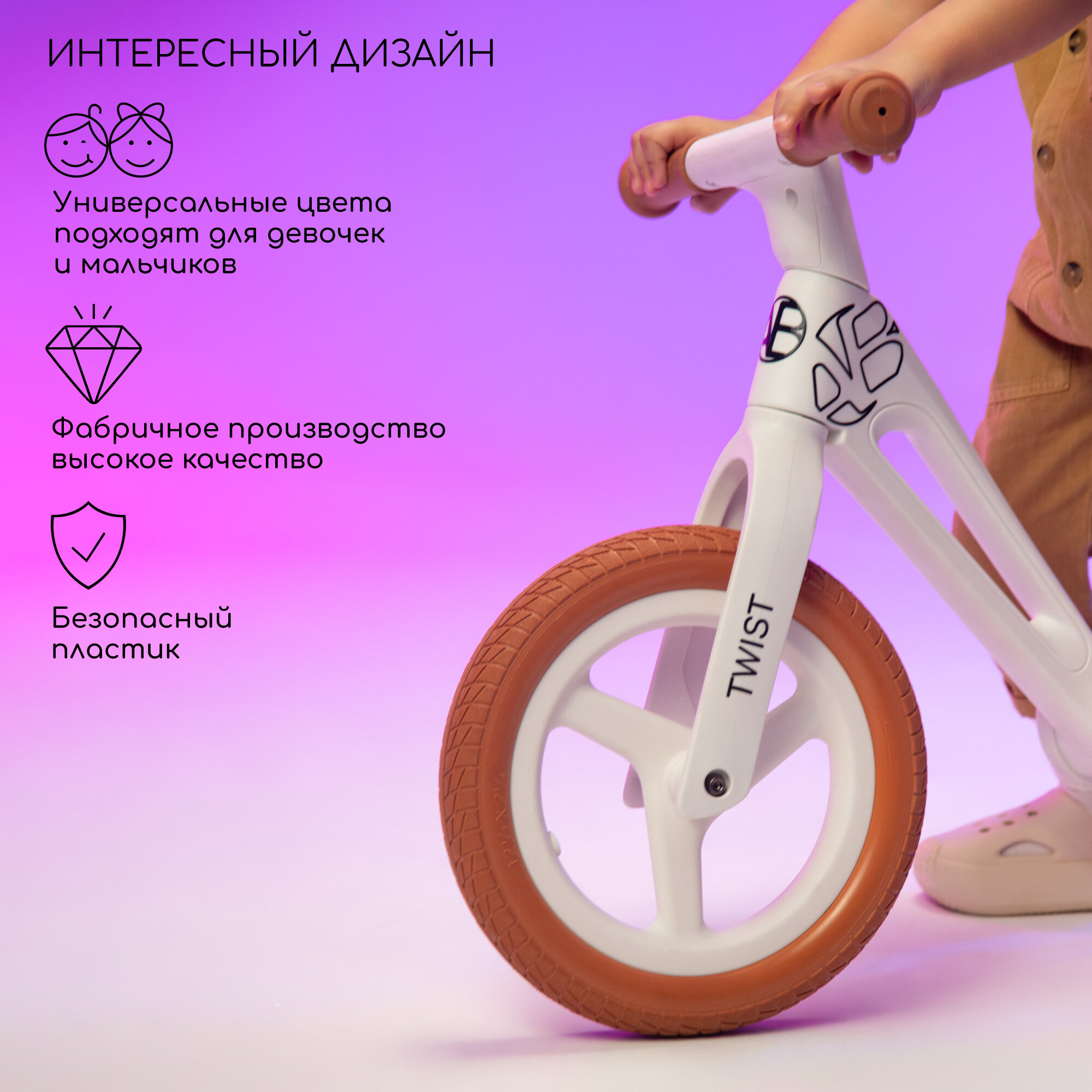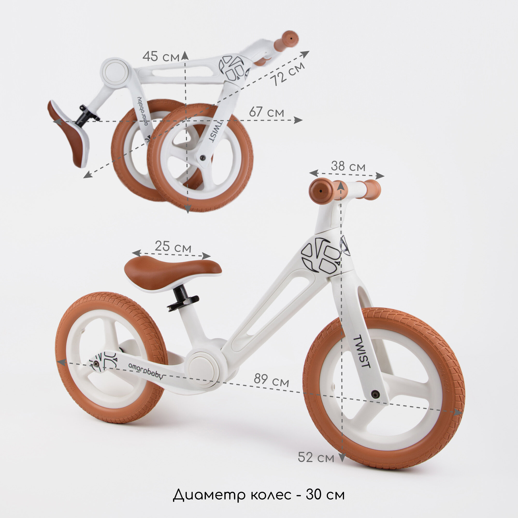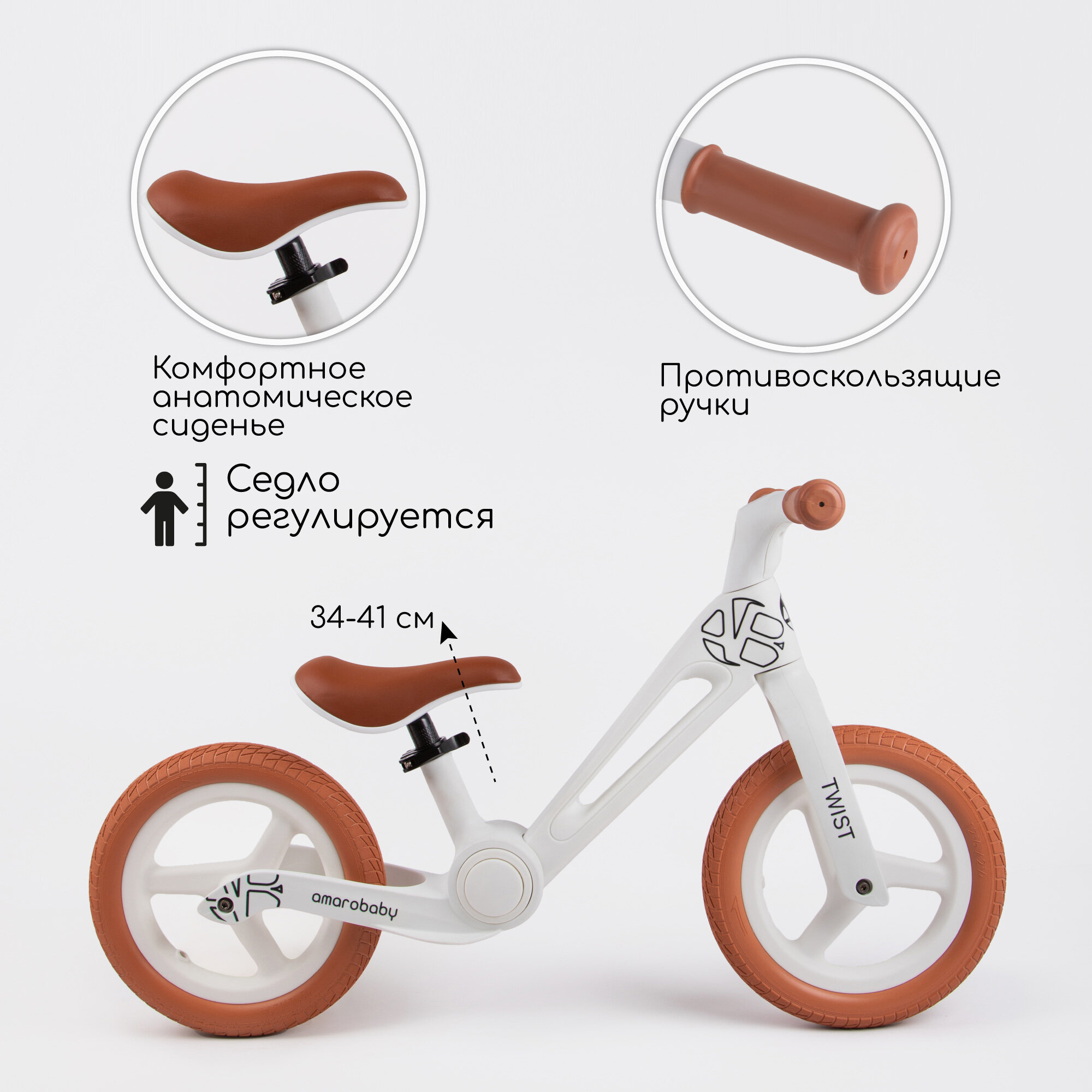 Двухколесный беговел Amarobaby Twist, белый/оранжевый интересное: