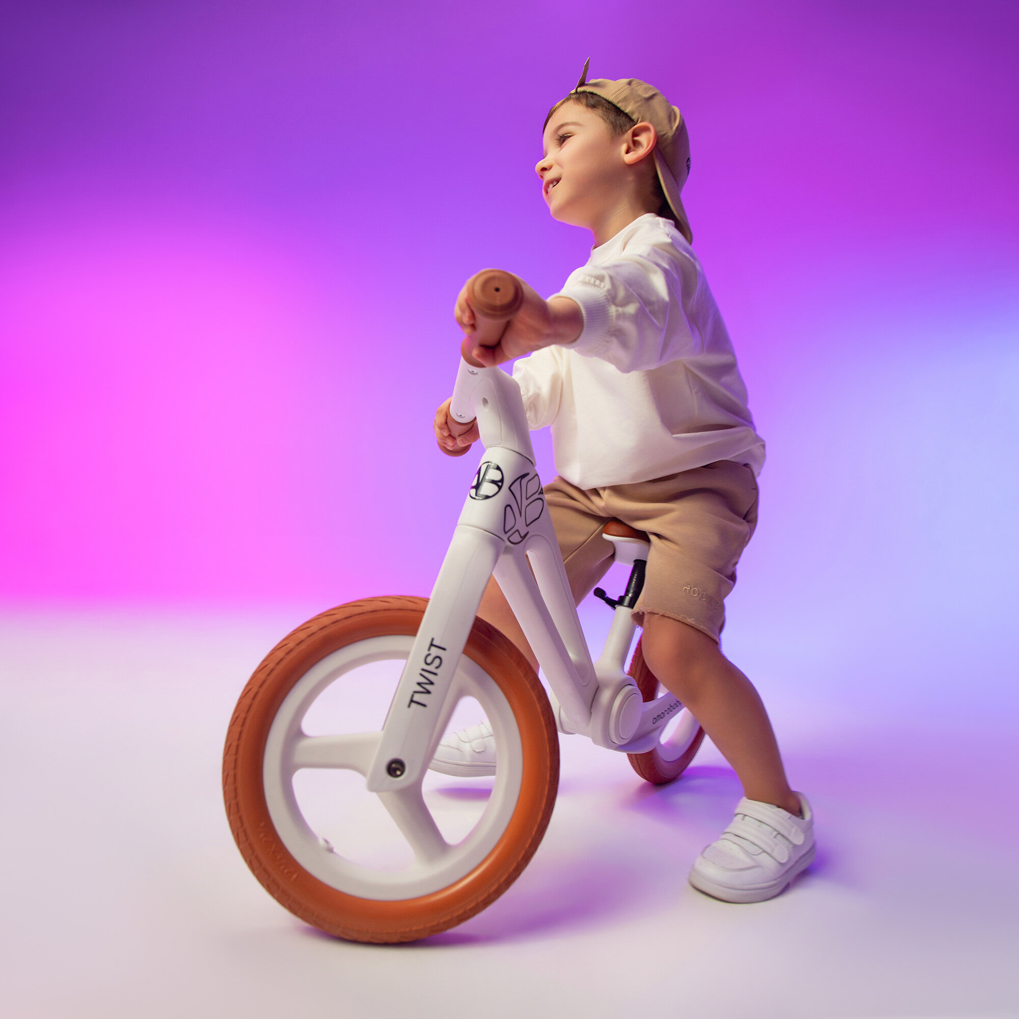 Беговел детский от 2 лет, KONIK! , светящиеся колеса, белый, с регулируемым сиденьем,