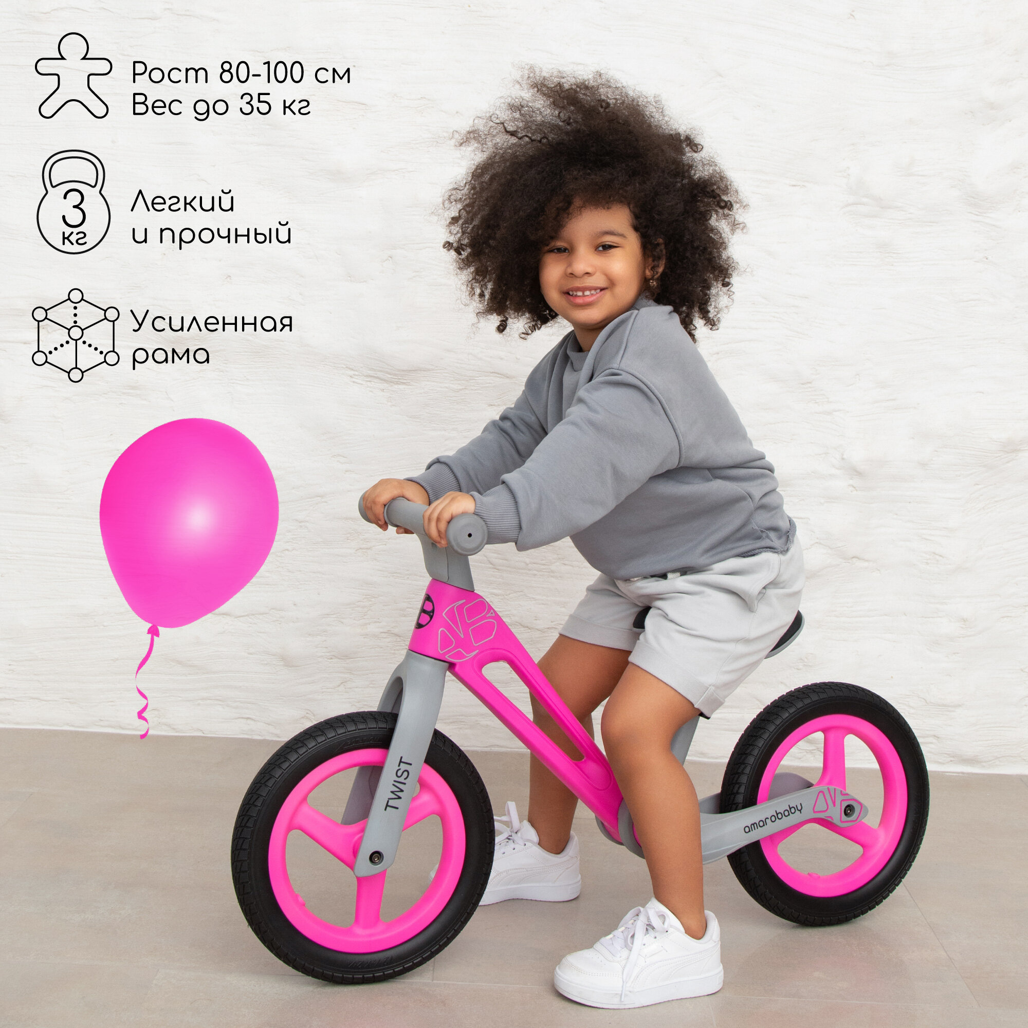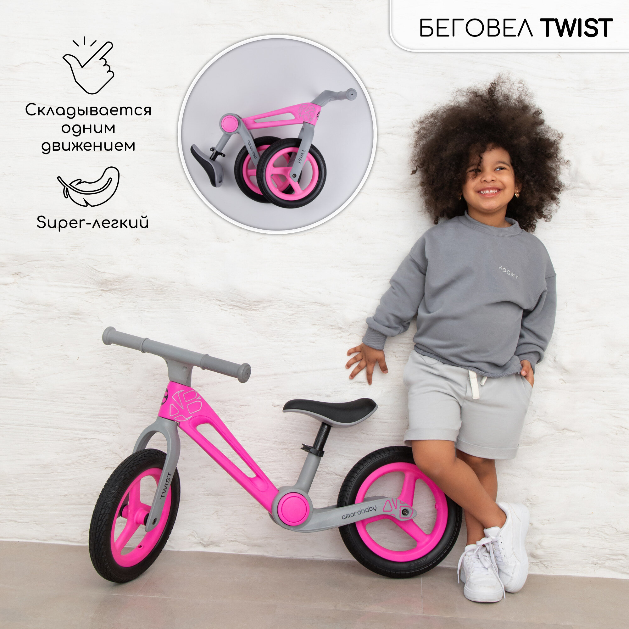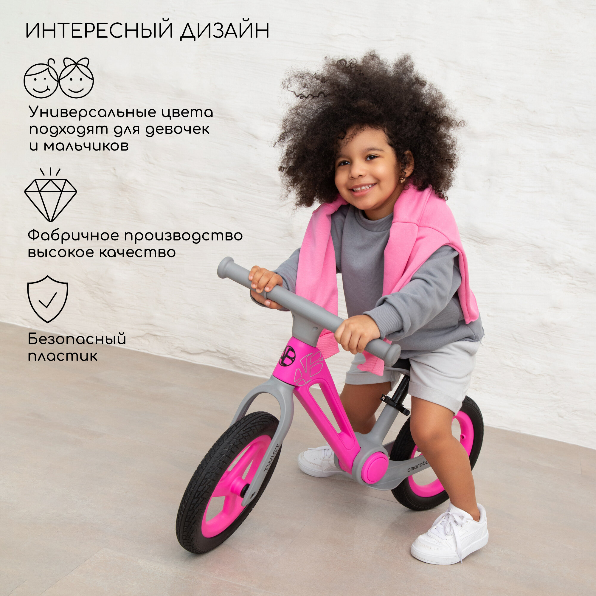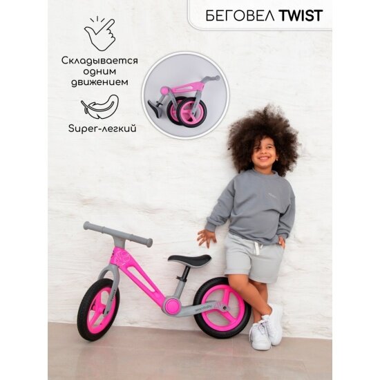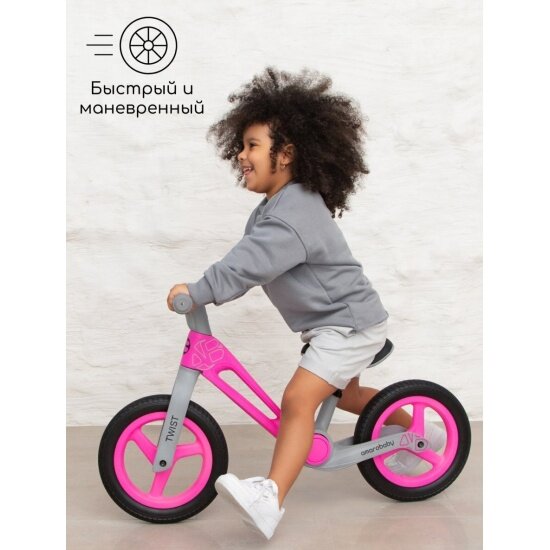 Двухколесный беговел Amarobaby Twist, розовый/серый интересное: